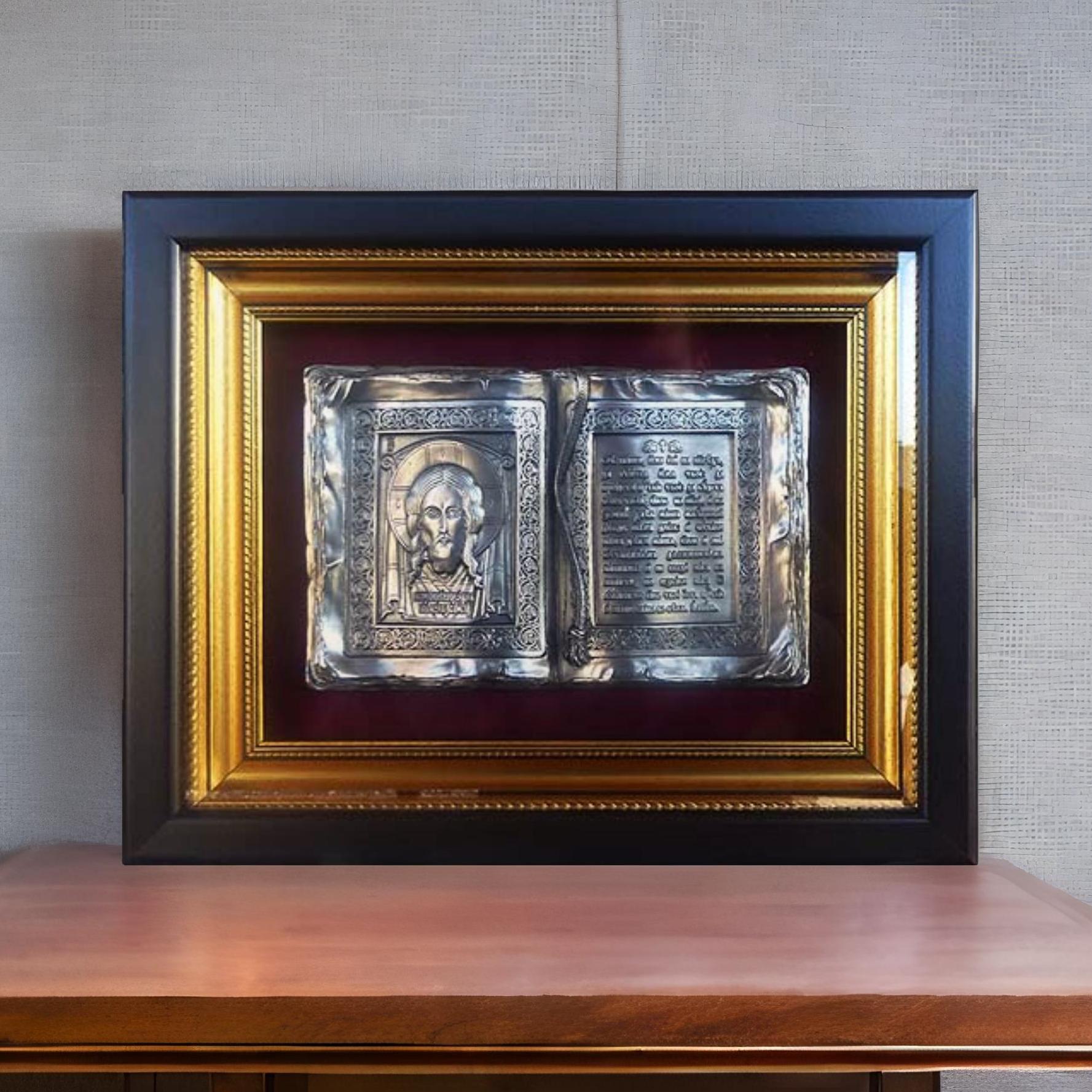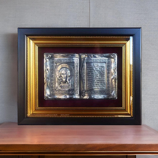 Внесите глубокий символ библейской молитвы Отче наш в свою жизнь. Это потрясающее произведение искусства создано с использованием техники гальванопластики, которая придает каждому символу неповторимую текстуру и глубину. Это изделие стать прекрасным подарком для любимых людей или прекрасно украсит дом, принося мир и гармонию в ваш интерьер.