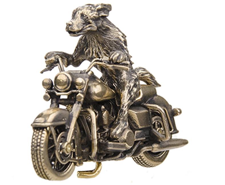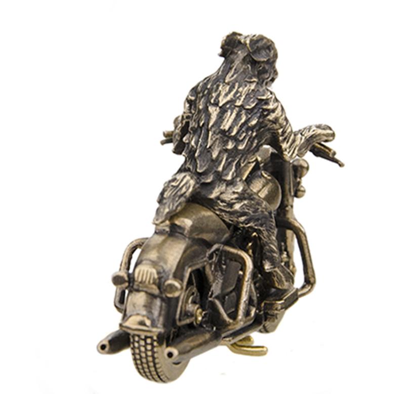 Если вы ищете уникальный декор для своего дома или отличный подарок для поклонника мотоциклов, наша Бронзовая статуэтка Мотоциклист — это то, что вам нужно! Сделана из высококачественной бронзы, эта статуэтка изображает волка за рулем мотоцикла, что придает ей оригинальный и запоминающийся вид. Ее детальное исполнение делает каждую деталь мотоцикла и фигуры волка реалистичной и заметной.
