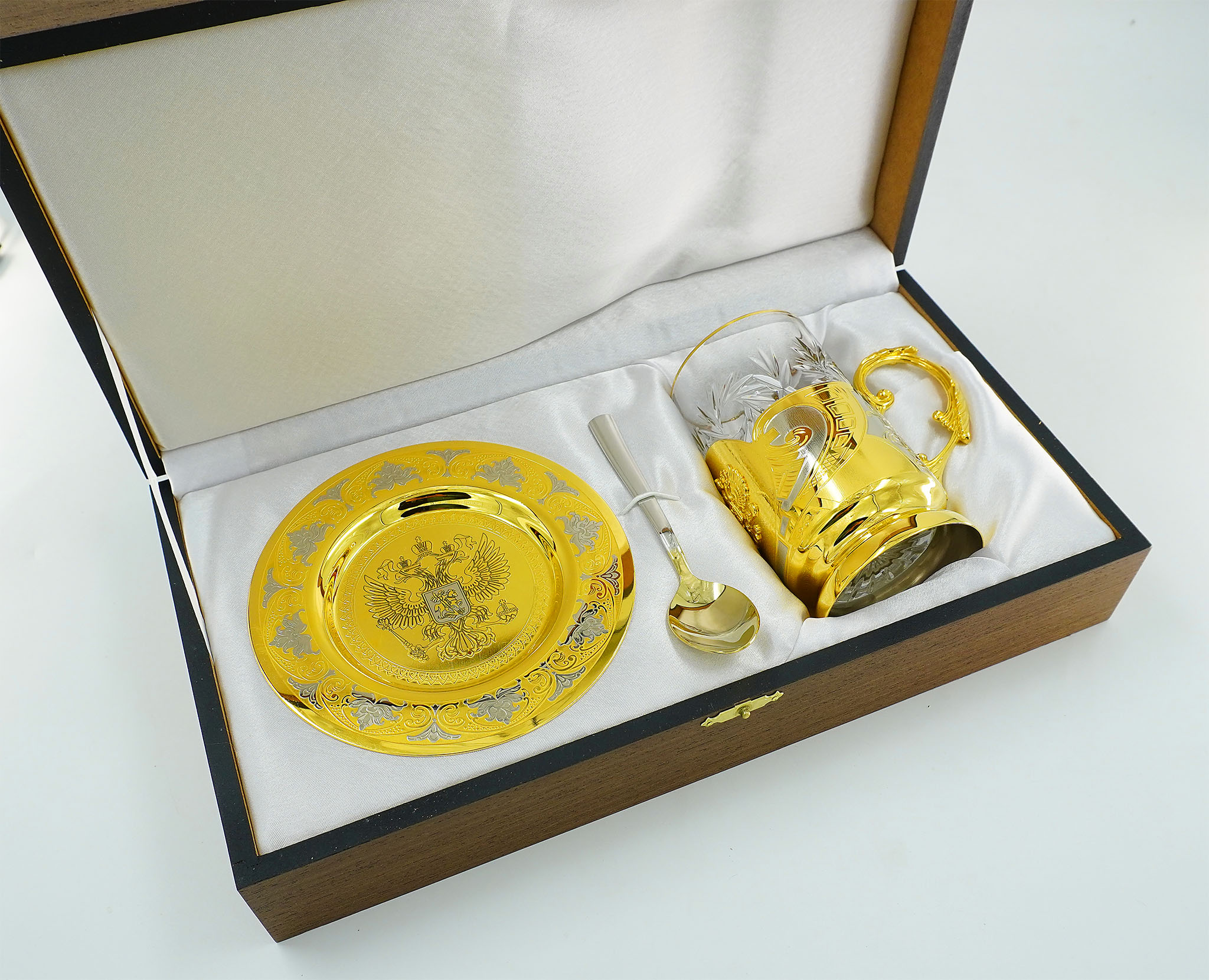 Отличный подарок получился отцу. Заказали чайный набор Россия, пришло очень быстро и упаковано все на высшем уровне. Отец был просто приятно удивлен красоте подстаканника и самого блюдца. Особенно сами гербы просто класс |