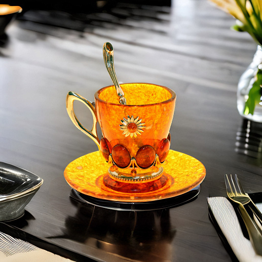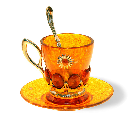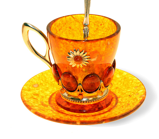 Чашка чайная из янтаря с ложечкой
