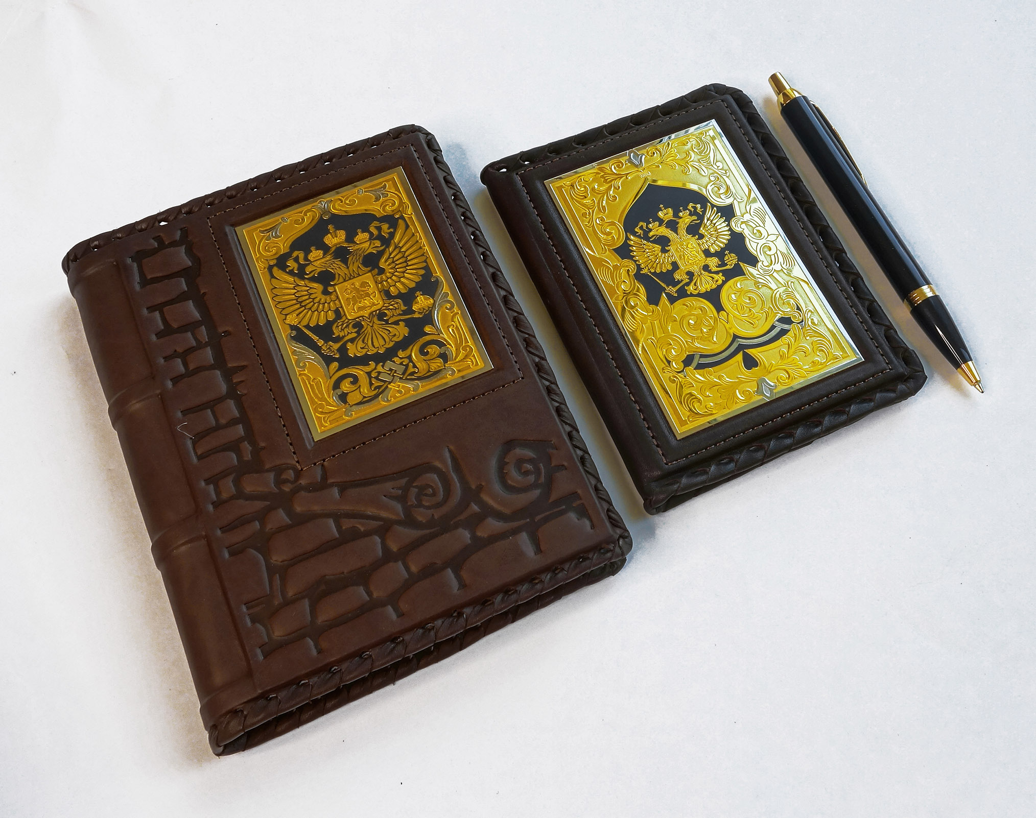 Оба предмета из данного набора выполнены из высококачественной натуральной кожи и украшены позолоченной накладкой, выполненной в уникальной технологии златоустовской гравюры. Выбирайте набор Ежедневник, авто, parker и делайте свою жизнь максимально комфортной и стильной! |