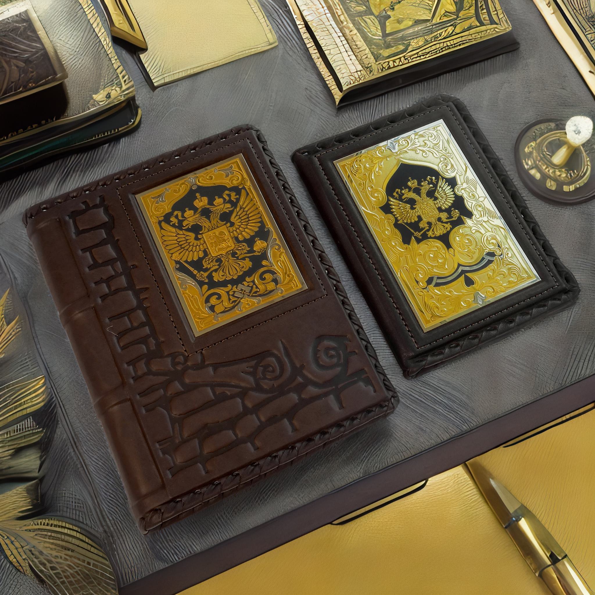 Драгоценный набор "Ежедневник, автодокументы" из Златоуста – это высококачественный ежедневник и обложка для автодокументов, изготовленные из натуральной кожи и украшенные красивой гравировкой. Великолепное сочетание функциональности и стиля делает этот набор идеальным подарком для деловых людей, водителей, а также для всех, кто ценит практичность и эстетику. Этот набор, сделанный мастерами Златоуста, служит отличным примером российского искусства гравировки. Каждый элемент набора выполнен с особой тщательностью и вниманием к деталям, что подчеркивает его эксклюзивность и уникальность. |