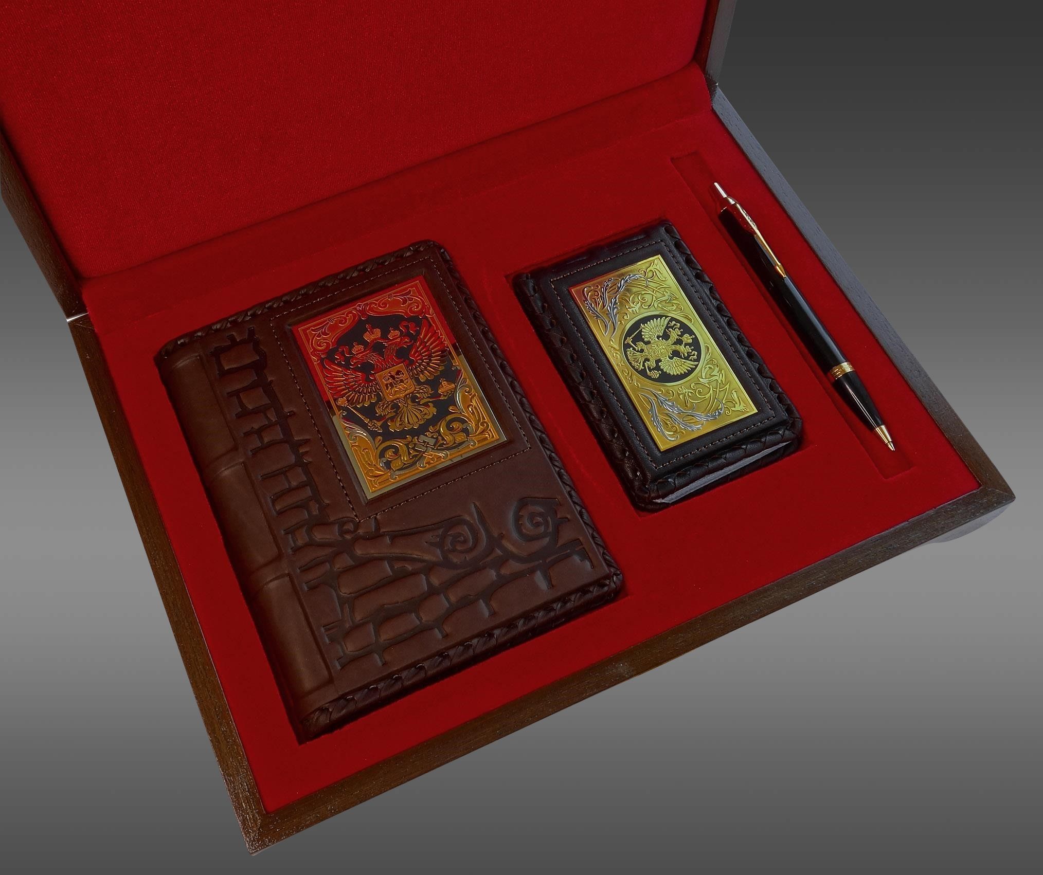 Набор "Ежедневник, визитница кожаная, pучка". Златоуст