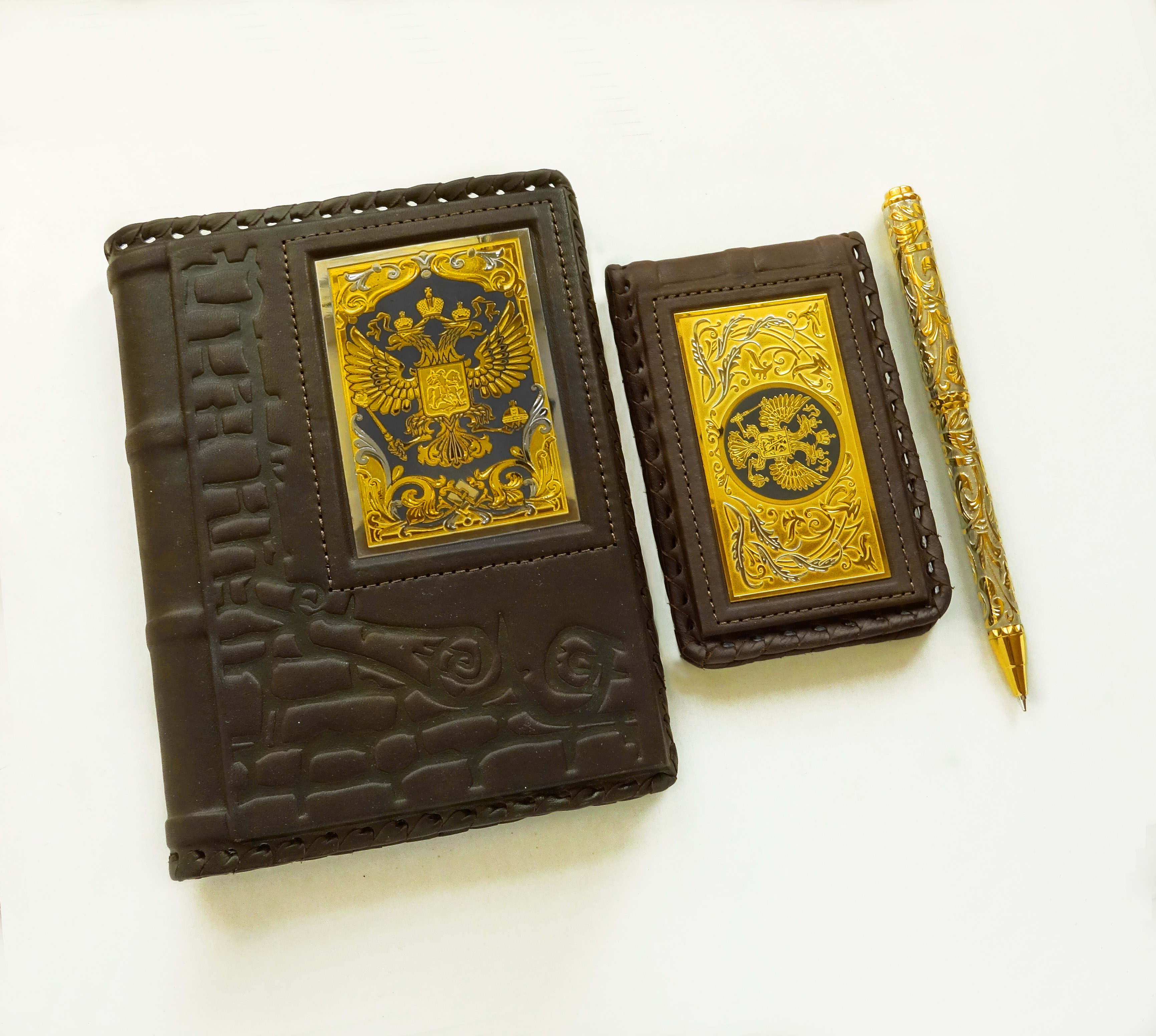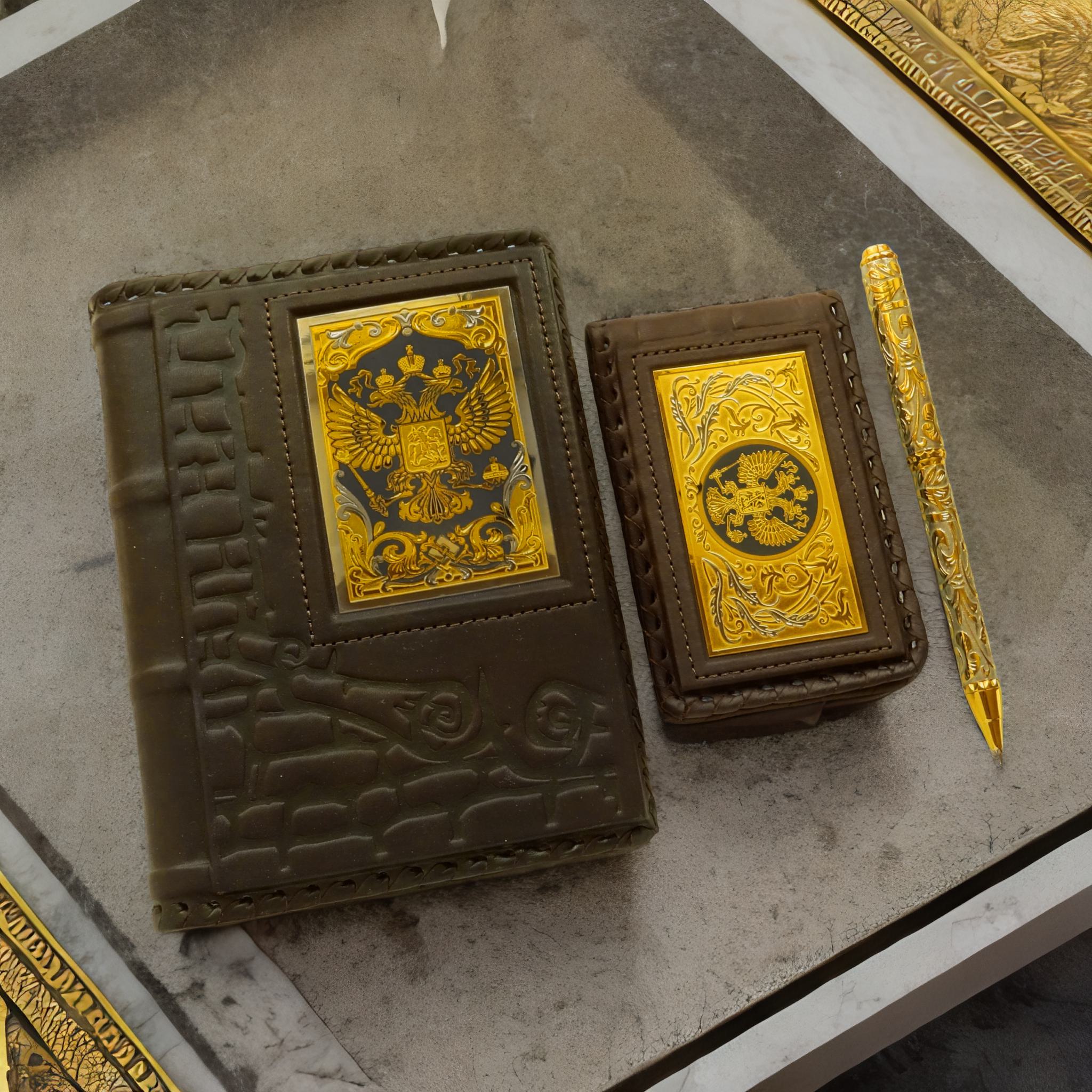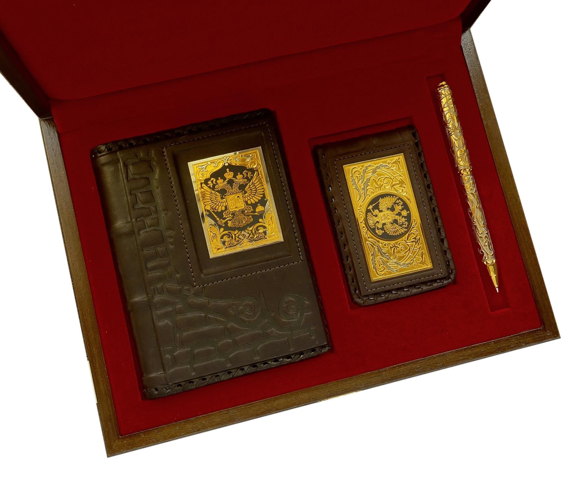 Набор "Ежедневник, визитница кожаная, ручка". Златоуст