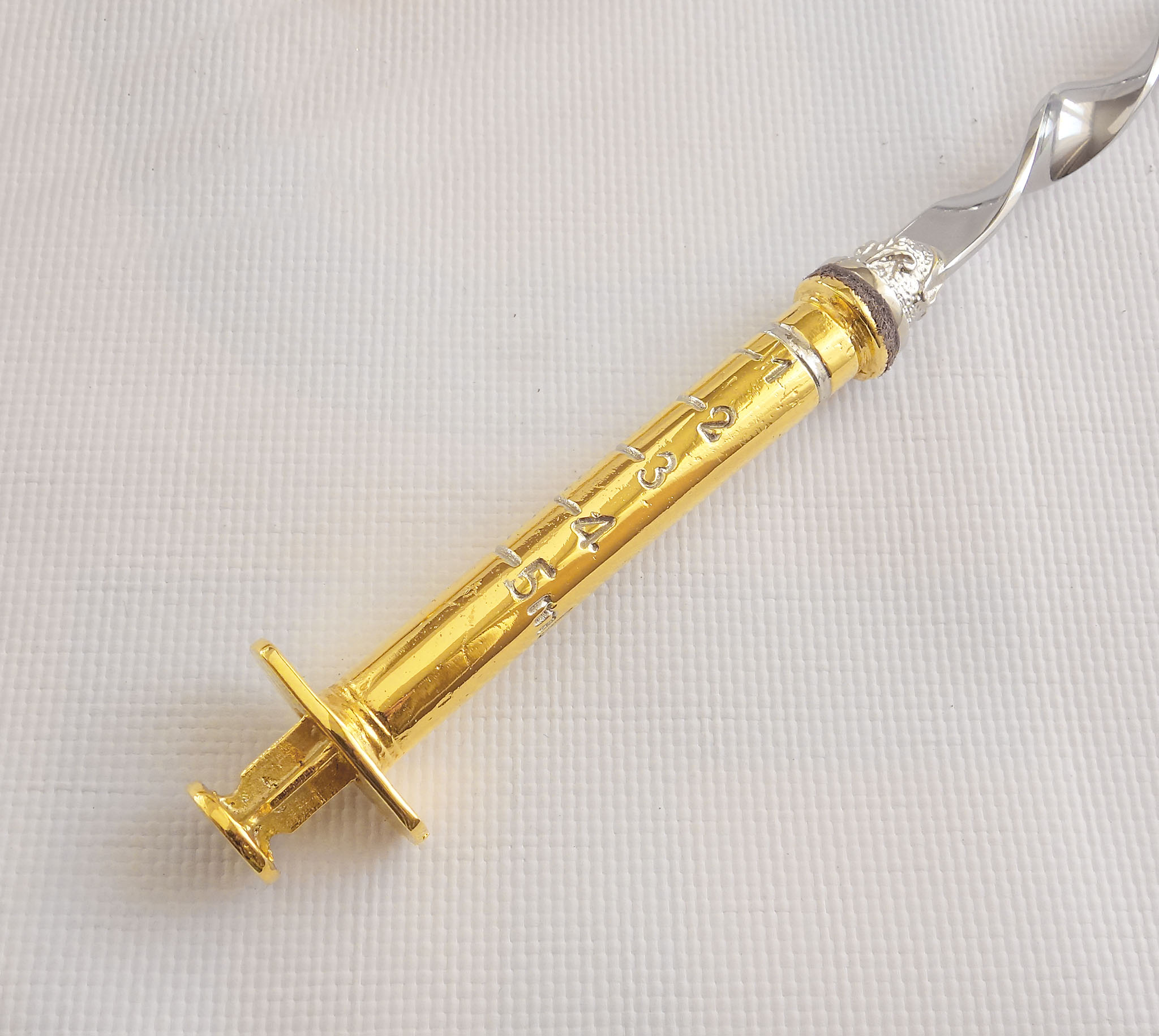 Внимание! Представляем Вашему вниманию абсолютный хит продаж – набор шампуров Медицинский. Обладая не только практической ценностью, но и неповторимым дизайном, этот набор станет прекрасным подарком для врачей, медицинских работников и всего, кто ценит оригинальность в быту. Каждый шампур выполнен в форме шприца, что придаёт особый шарм Вашему шашлыку. Ручки изготовлены из бронзы с золочение, создавая неповторимый образ «Позолоты».