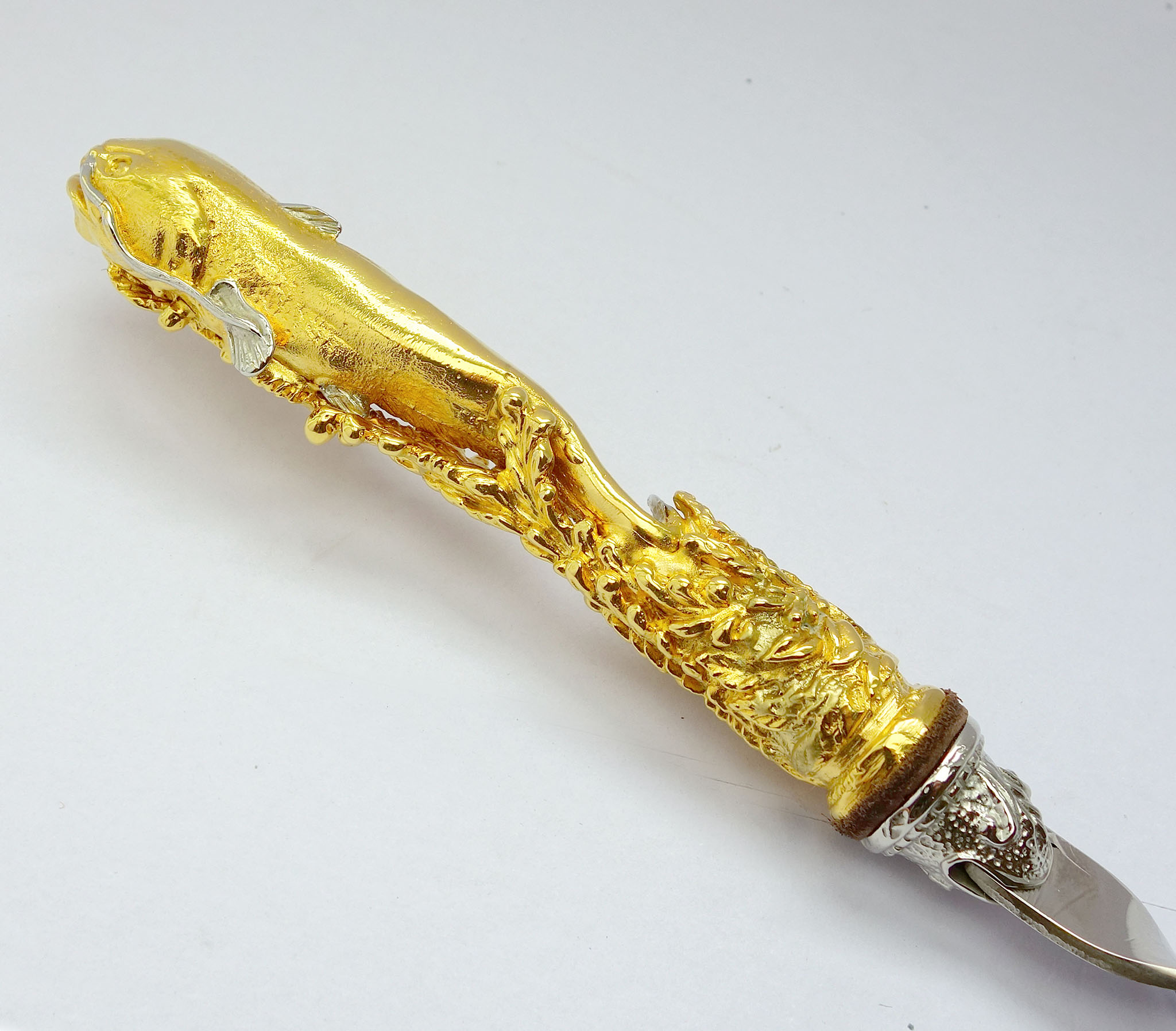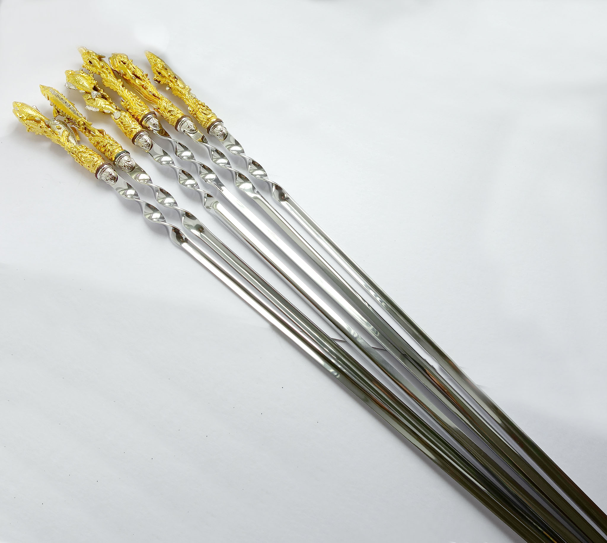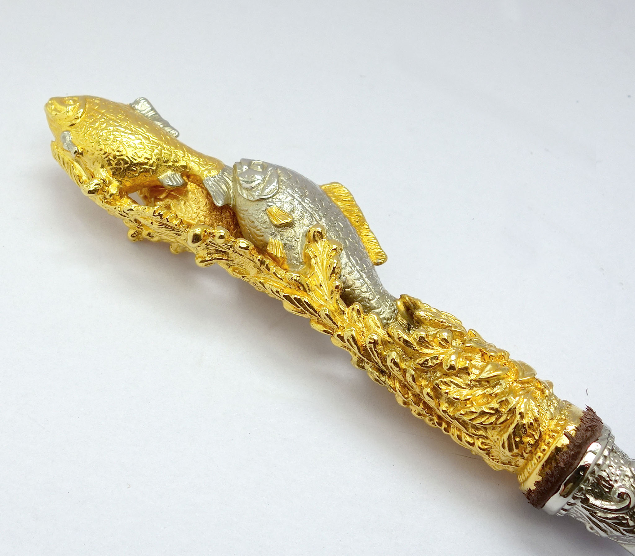 Представляем вашему вниманию набор шампуров Рыбы. Это не просто инструмент для приготовления шашлыка – это совершенно новый уровень вашего комфорта и стиля! В набор входят шампуры с уникально декорированной ручкой из бронзы, выполненной в виде рыбы. Специальное покрытие из золота придает им изысканный и благородный вид.