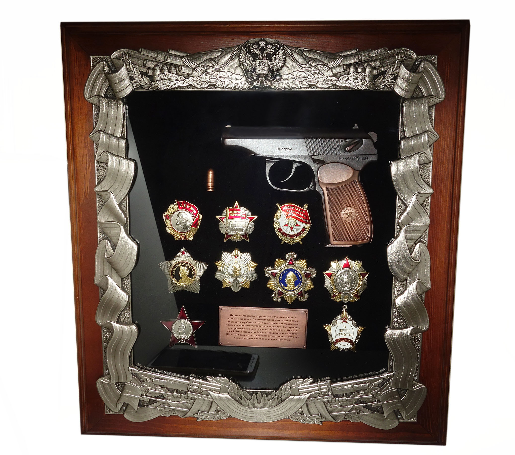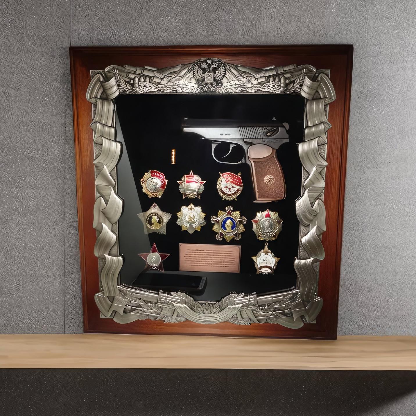 Деревянная ключница с пистолетом Макарова и наградами СССР