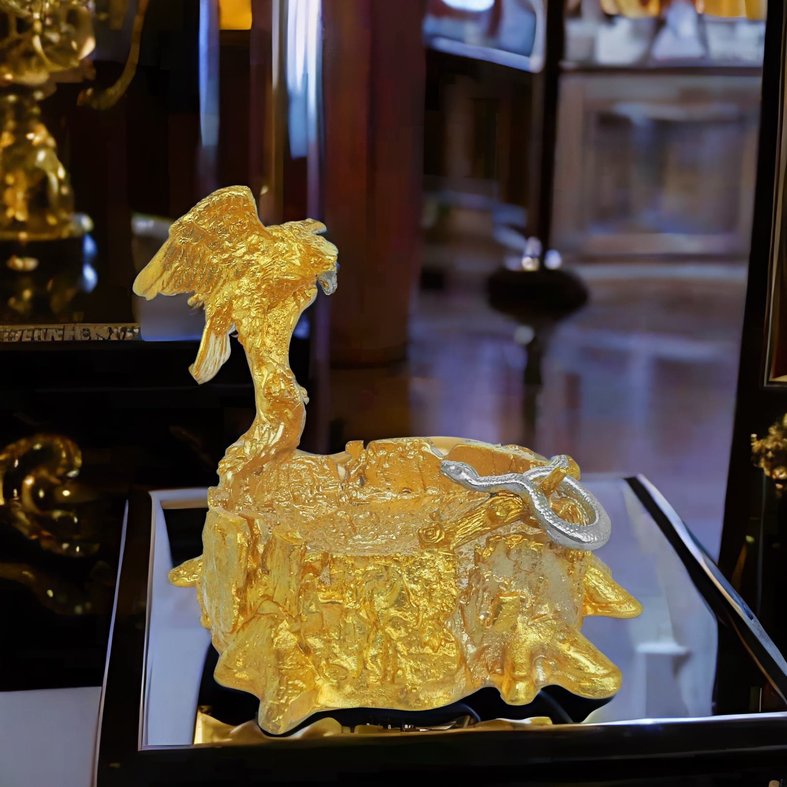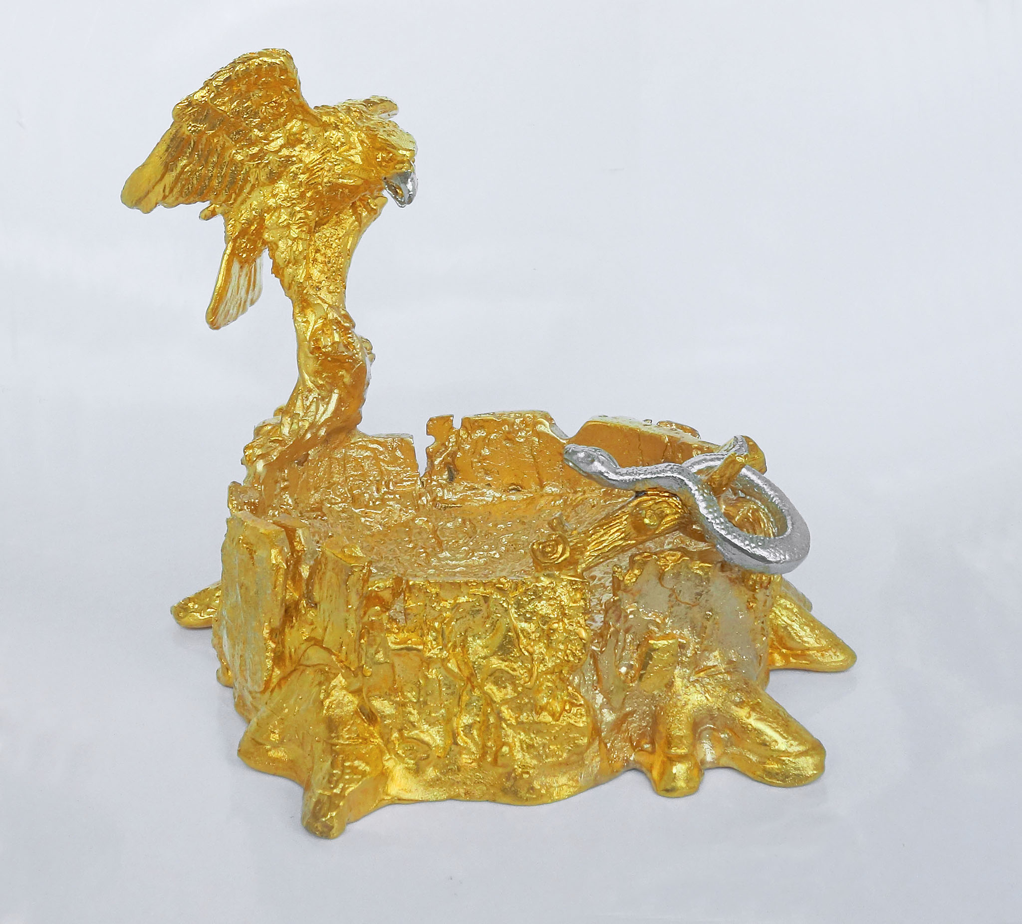 Вековые традиции и превосходный стиль в ваших руках: уникальная настольная пепельница Охота на змею выполнена из позолоченной бронзы. Антиквариат нового поколения! Эта пепельница — поистине уникальное изделие, которое станет главным украшением вашего рабочего стола или кабинета. Пепельница ручной работы оснащена проработанным до мелочей рельефом, который показывает захватывающую сцену охоты на змею. Этот предмет интерьера создаст особую атмосферу, подойдет как коллекционерам, так и любителям эксклюзивных вещей. Подарите себе неповторимый аксессуар, обладающий идеальным сочетанием величественности и изящества.