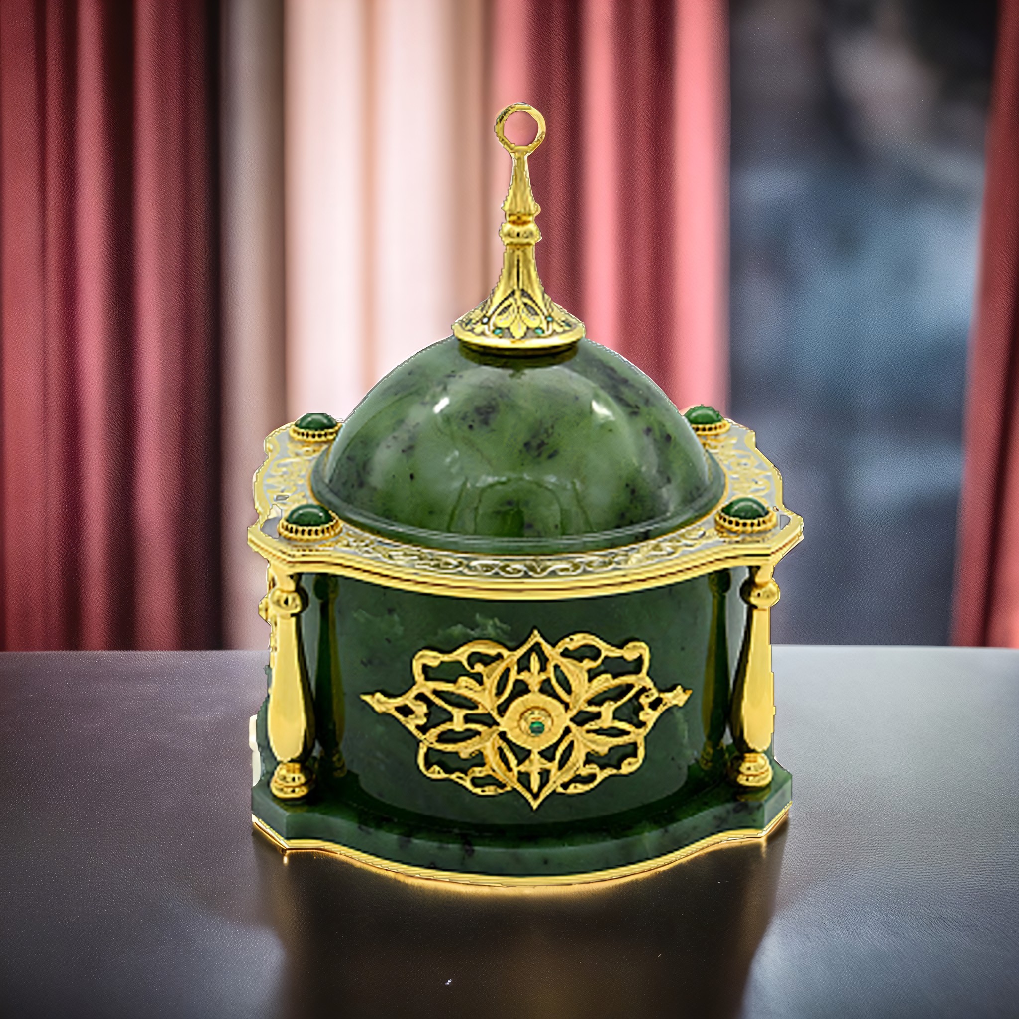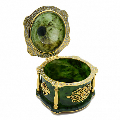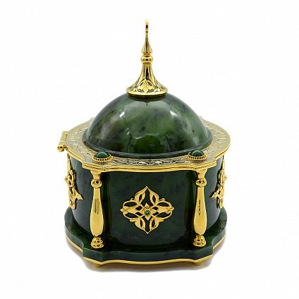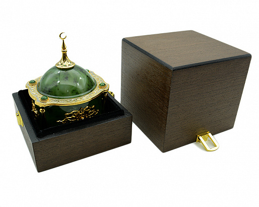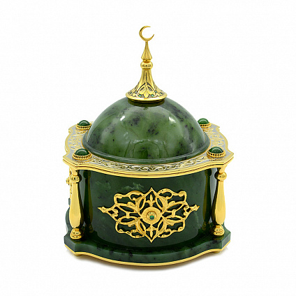 Ищете уникальный и внушительный подарок? Наша нефритовая шкатулка для украшений в виде мечети станет замечательным выбором! Эта роскошная шкатулка создана с любовью и заботой о деталях. Она выполнена из красивого и прочного нефрита, и дополнена уникальной златоустовской гравюрой. Золотое покрытие делает ее еще более изысканной и привлекательной.