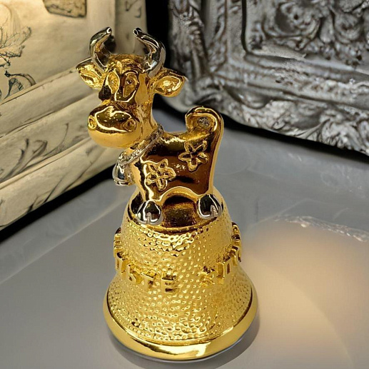Встречайте новогодние праздники с особым шармом! Новогодний колокольчик Будьте здоровы — это не только прекрасный подарок для близких, но и символ богатства, здоровья и процветания на Вашем праздничном столе. Наш колокольчик изготовлен из прочной бронзы с золочением, что придает ему особенный, утонченный блеск. На колокольчике вы найдете надпись Будьте здоровы и прекрасно выполненную статуэтку быка — символа наступающего 2021 года по восточному календарю. Его присутствие призвано привлечь счастье, здоровье, любовь и богатство в ваш дом.