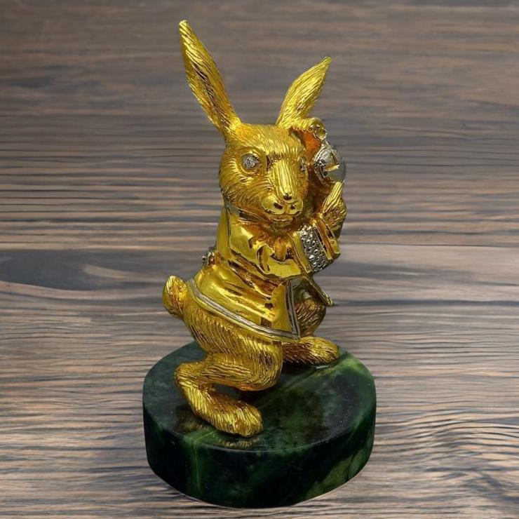 Новогодняя статуэтка "Кролик и часы"