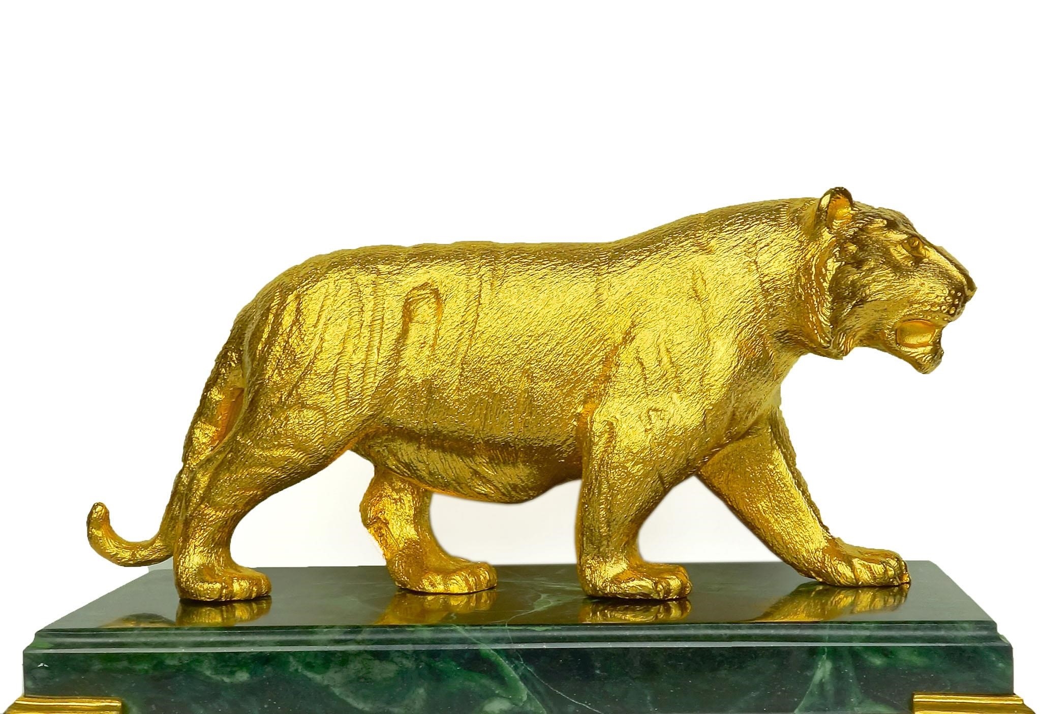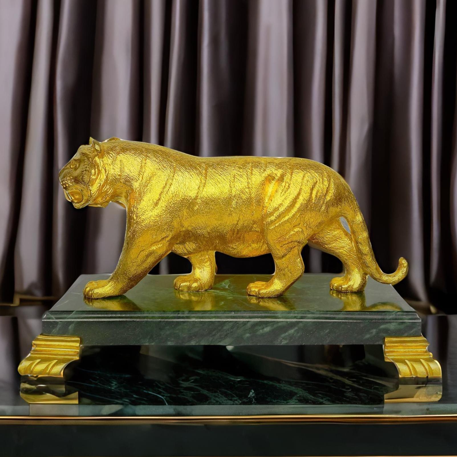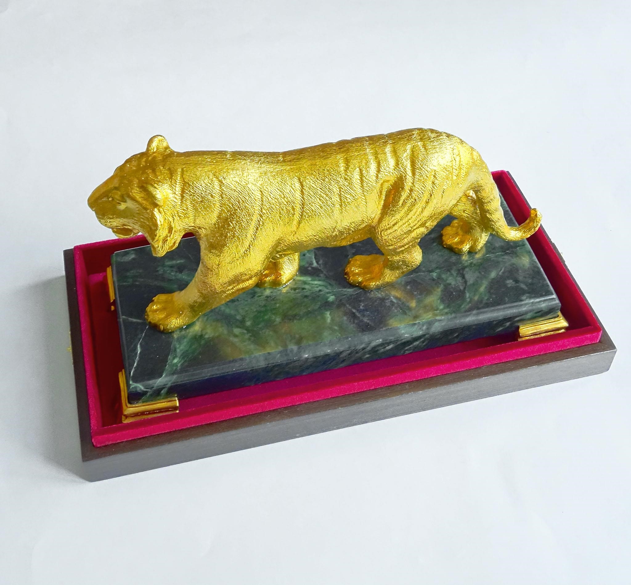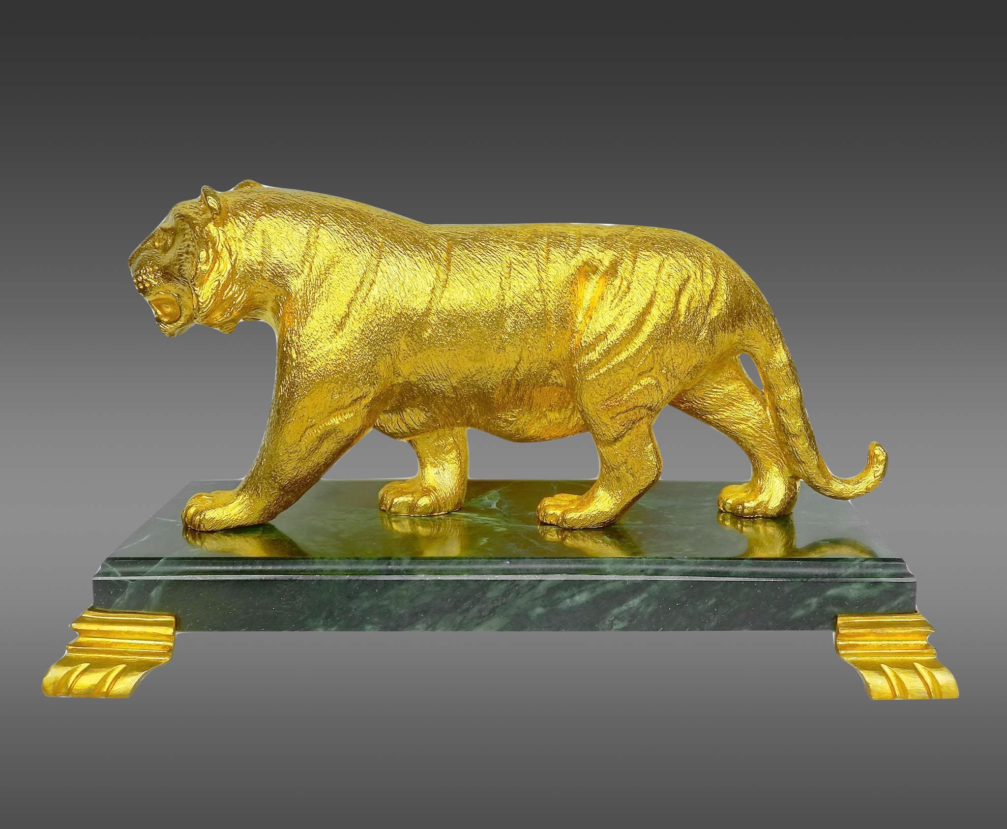 Статуэтка "Тигр на змеевике" - это великолепное произведение искусства, которое отражает мощь и величие тигра. Изготовленная из бронзы и покрытая золотом, эта статуэтка имеет размеры 270x120 мм и высоту 190 мм. Процесс создания включает в себя слесарные работы, травление, золочение, обработку камня и художественное литье. Это прекрасный подарок для любителей искусства, коллекционеров или любого, кто ценит уникальные и красивые предметы. Статуэтка упакована в деревянную коробку, что делает ее идеальным подарком для любого случая. |