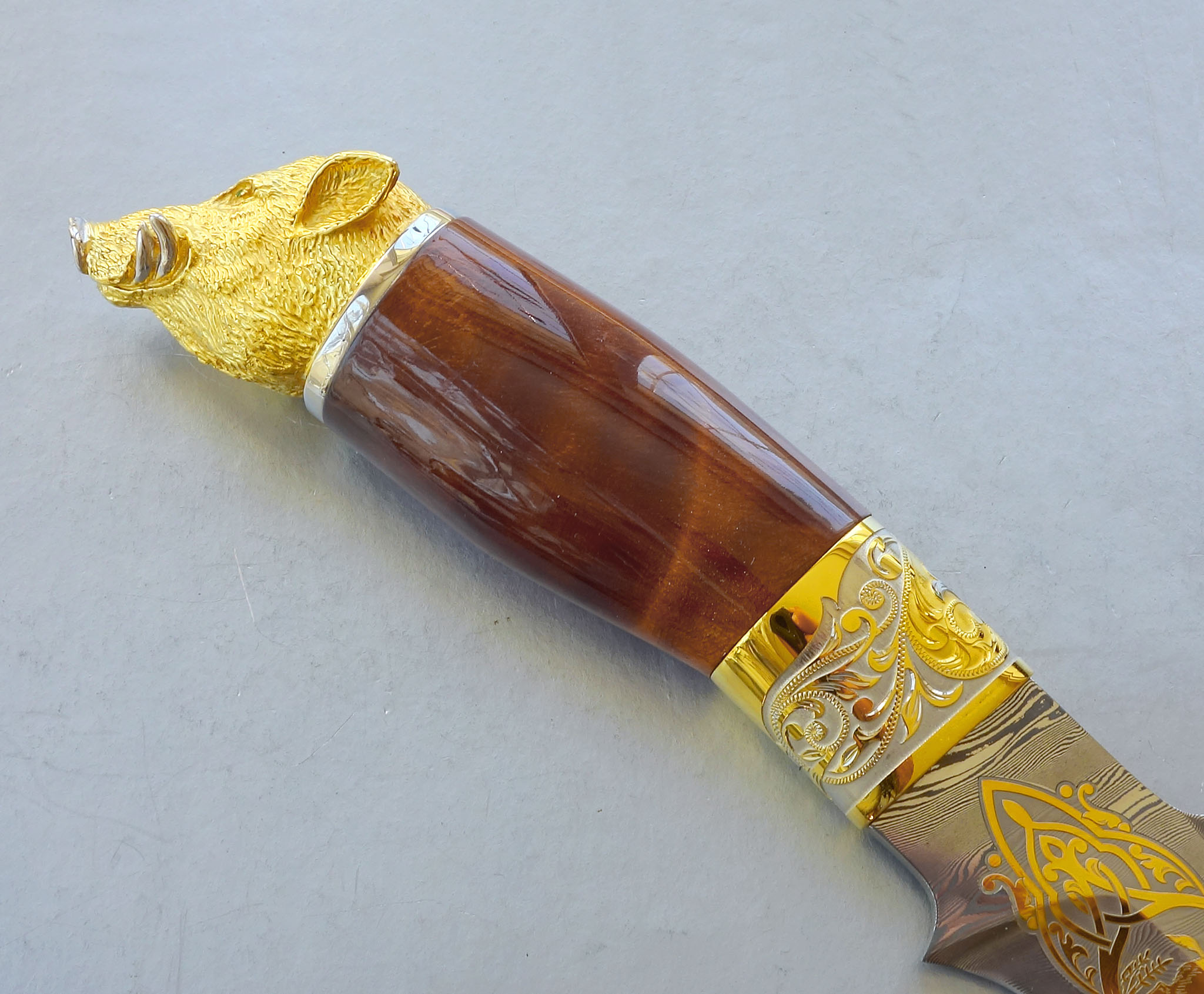 Представляем вам коллекционный нож дамасский "Кабан" №6 из Златоуста - это настоящее произведение искусства, созданное с любовью и страстью к ремеслу. Этот нож обладает не только прекрасным дизайном, но и высоким качеством исполнения. Лезвие ножа сделано из дамасской стали, которая обеспечивает превосходную остроту и долговечность. Уникальный дизайн рукояти с изображением кабана и красивая гравировка делают этот нож поистине неповторимым. Этот нож станет отличным подарком для любого любителя ножей и украсит коллекцию самого требовательного коллекционера. |