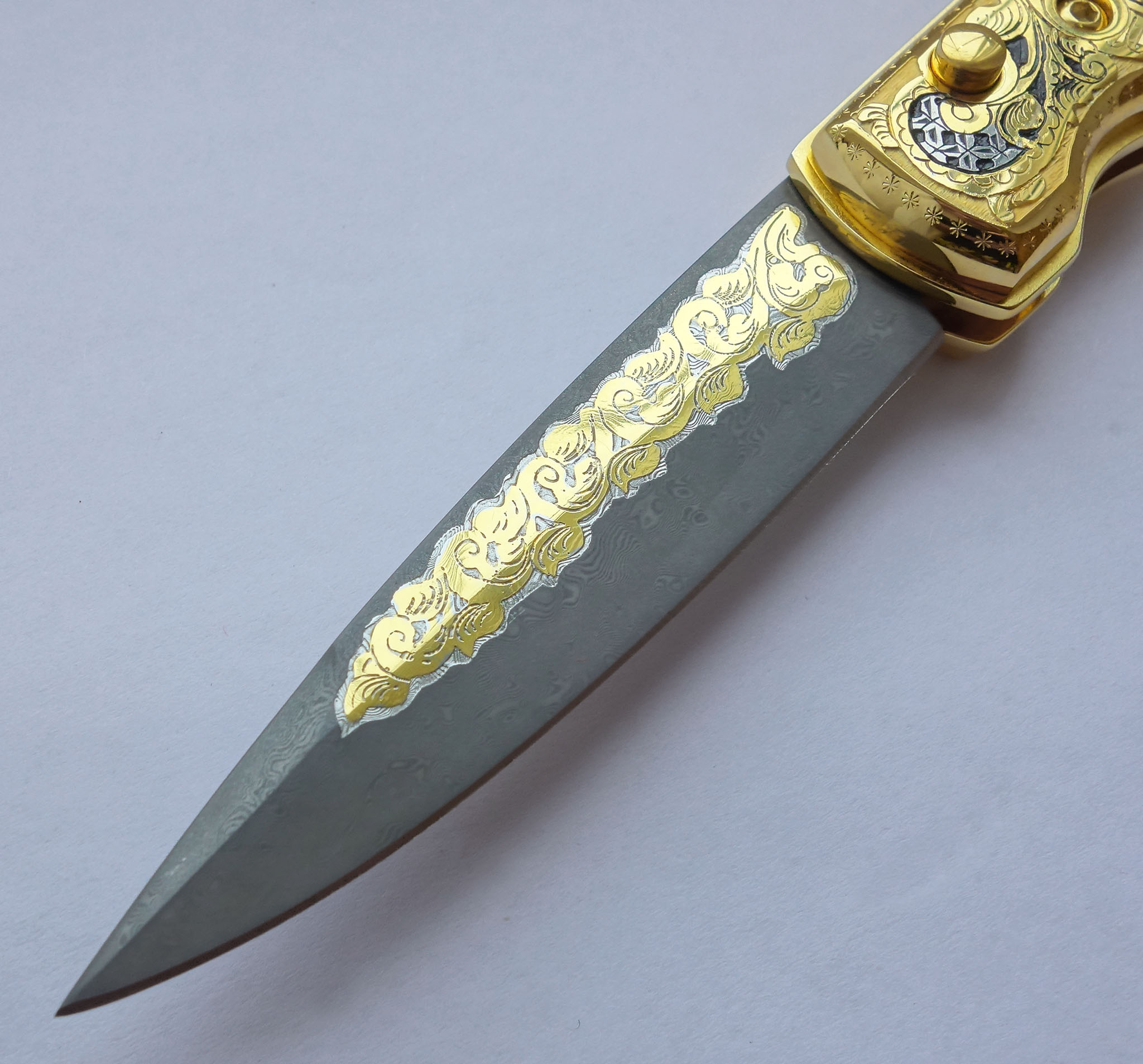 Нож складной дамасский "Мишка в лесу" Златоуст.