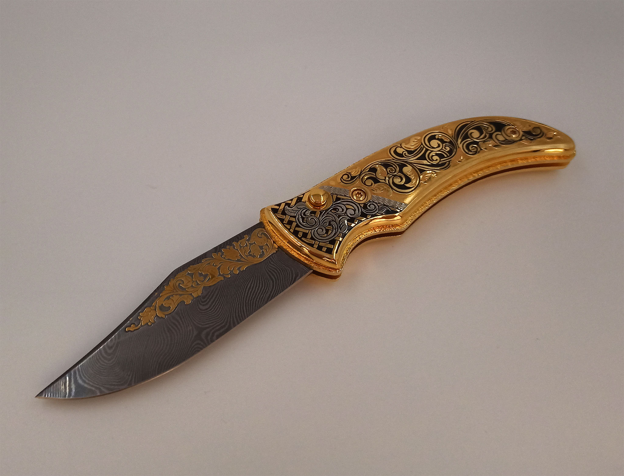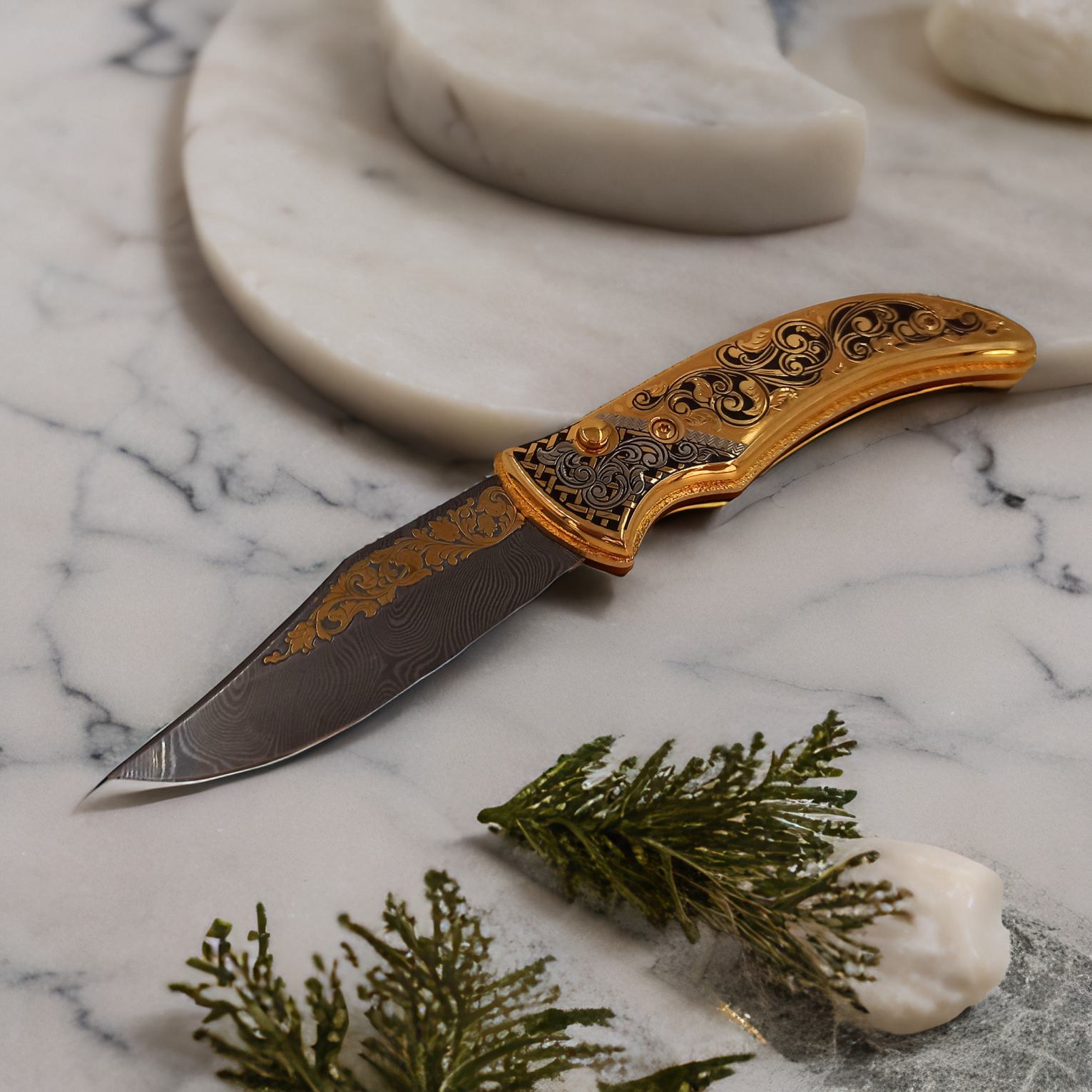 Нож складной дамасский "Орнамент" №2 Златоуст