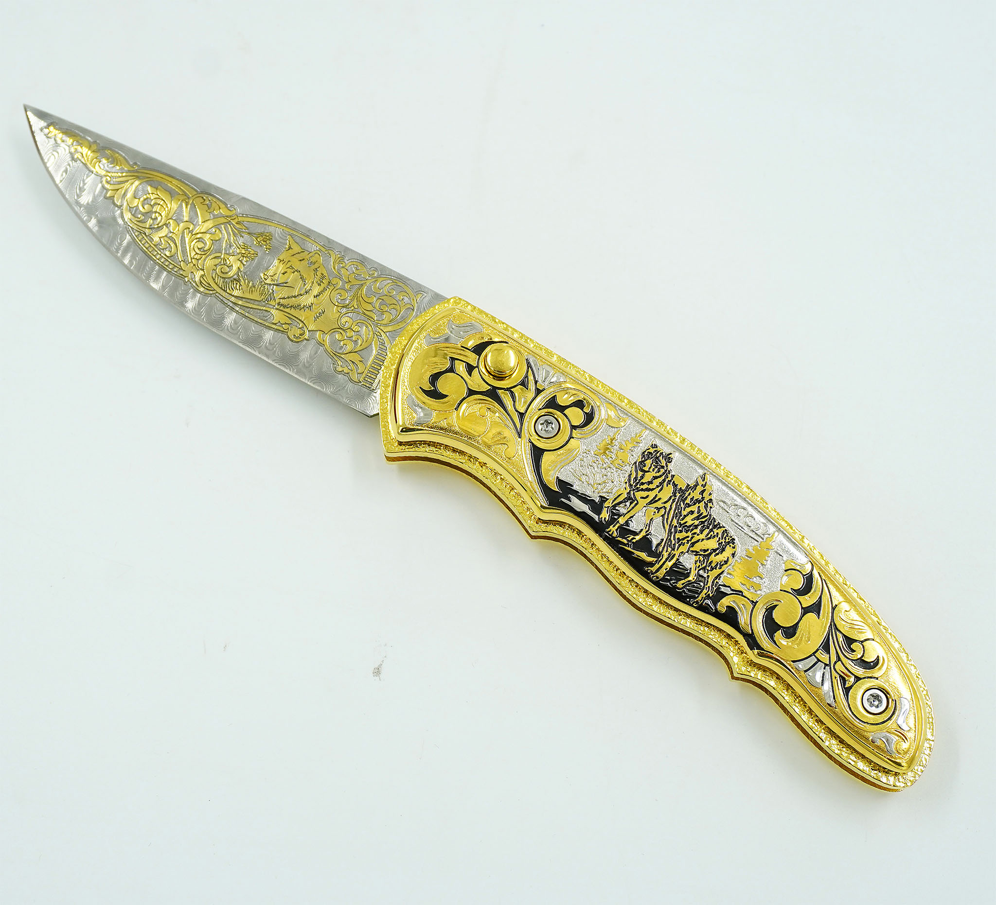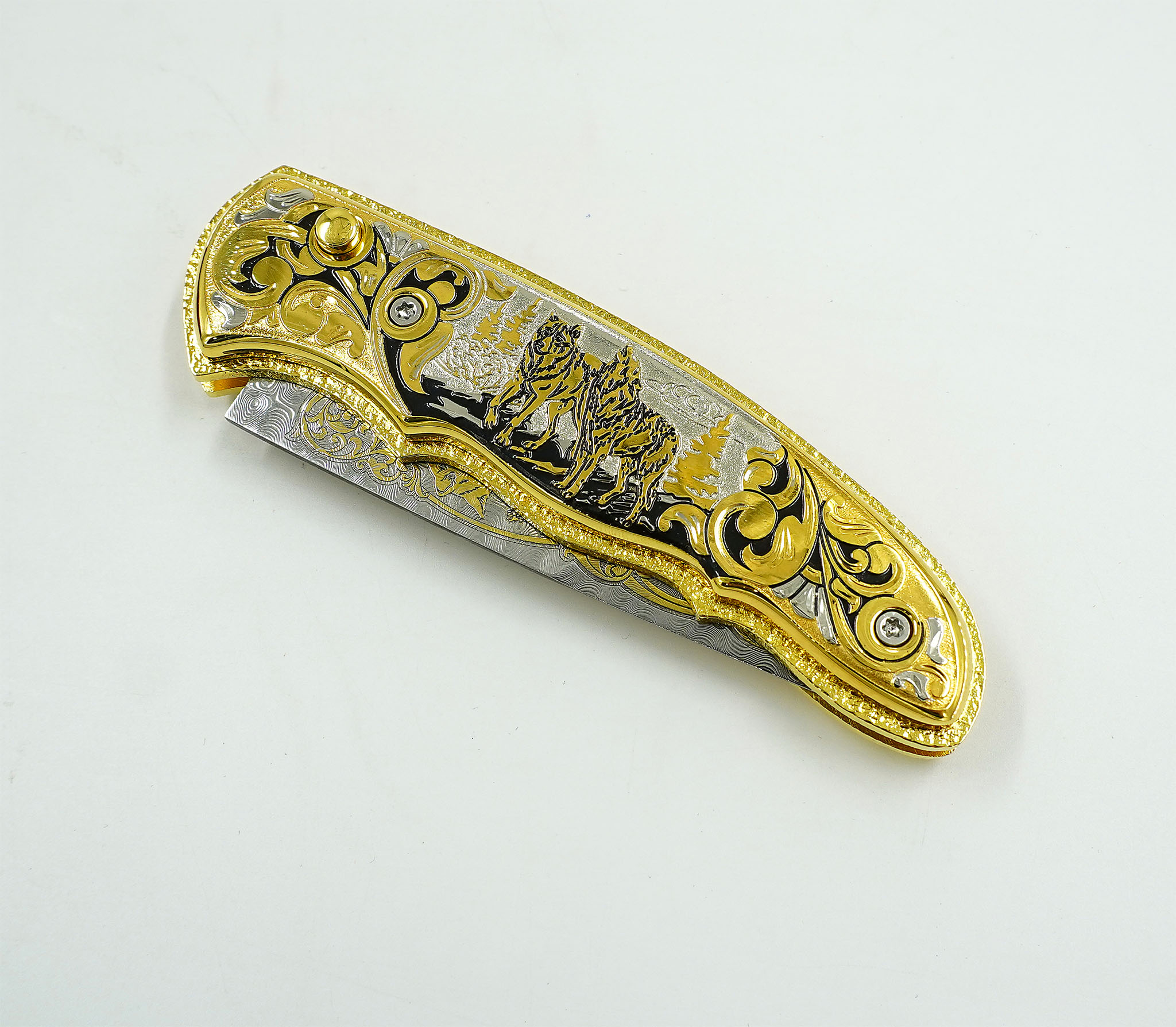 Нож складной дамасский "Волчья пара.№2 Златоуст