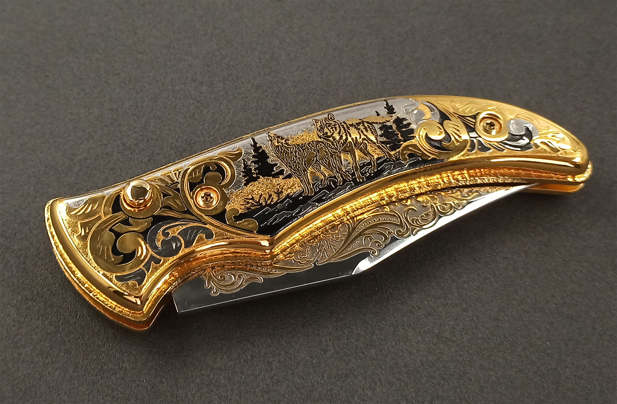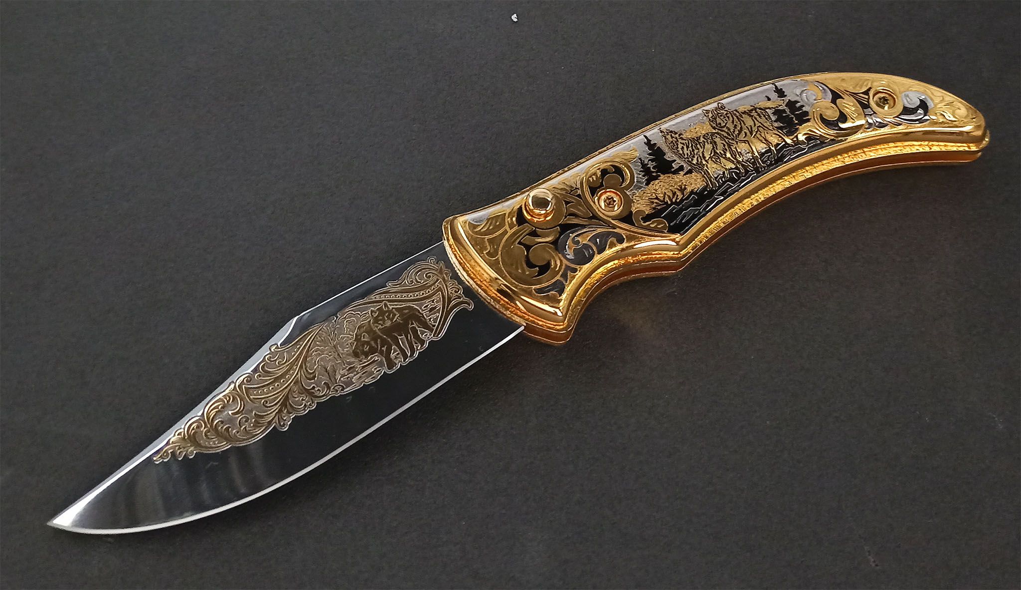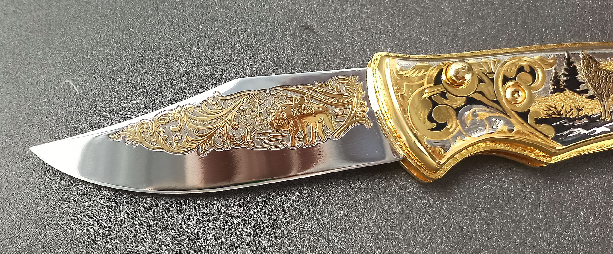 Нож складной "Волк и луна". Златоуст