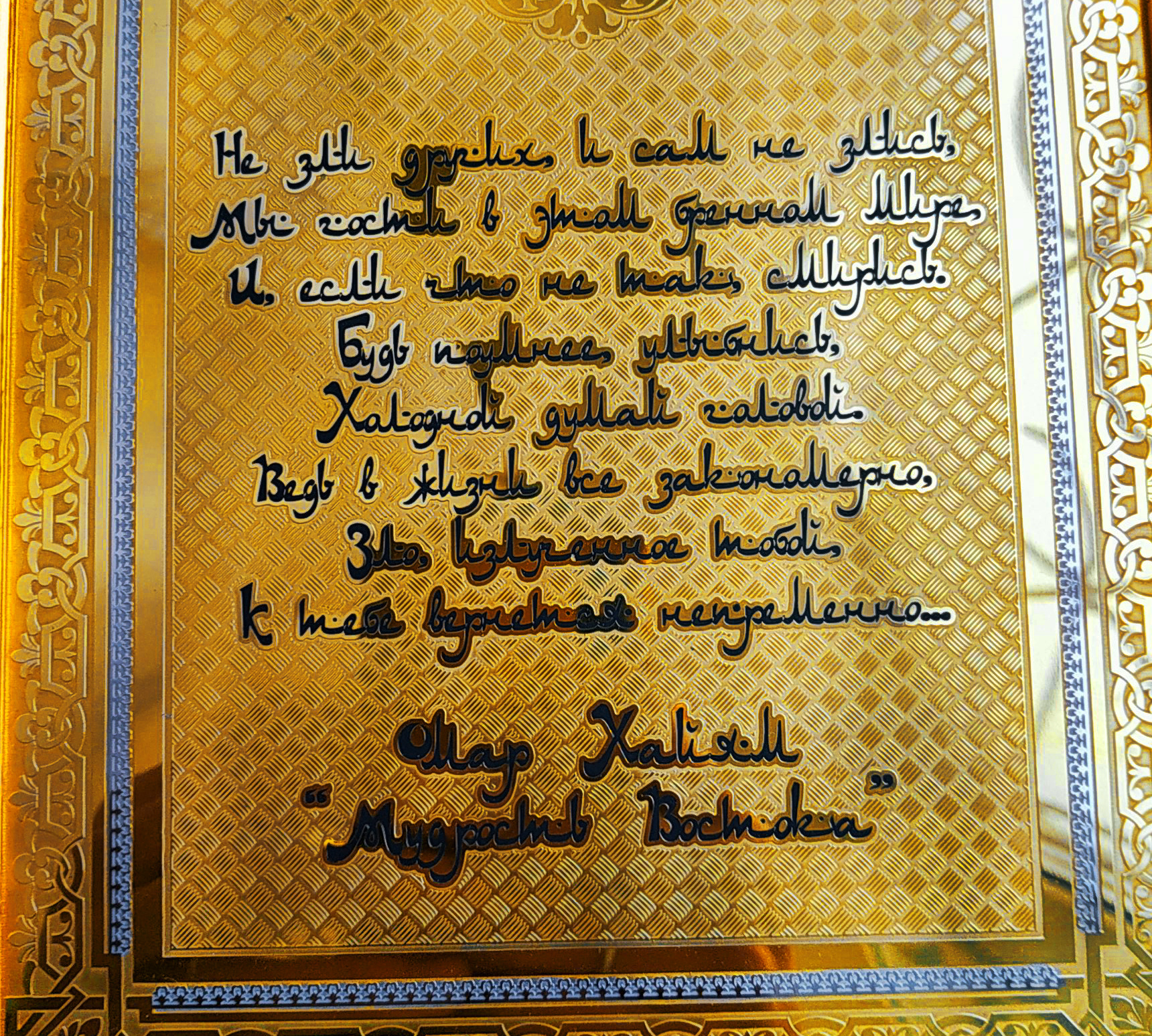Подарком доволен. Оберег Омар Хайям в живую даже лучше смотрится чем на фотографии. |