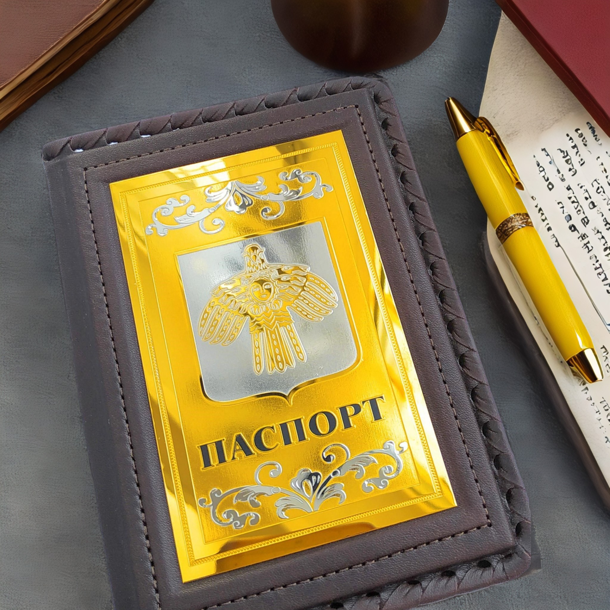 Кожаная обложка на паспорт "Гербовая". Златоуст