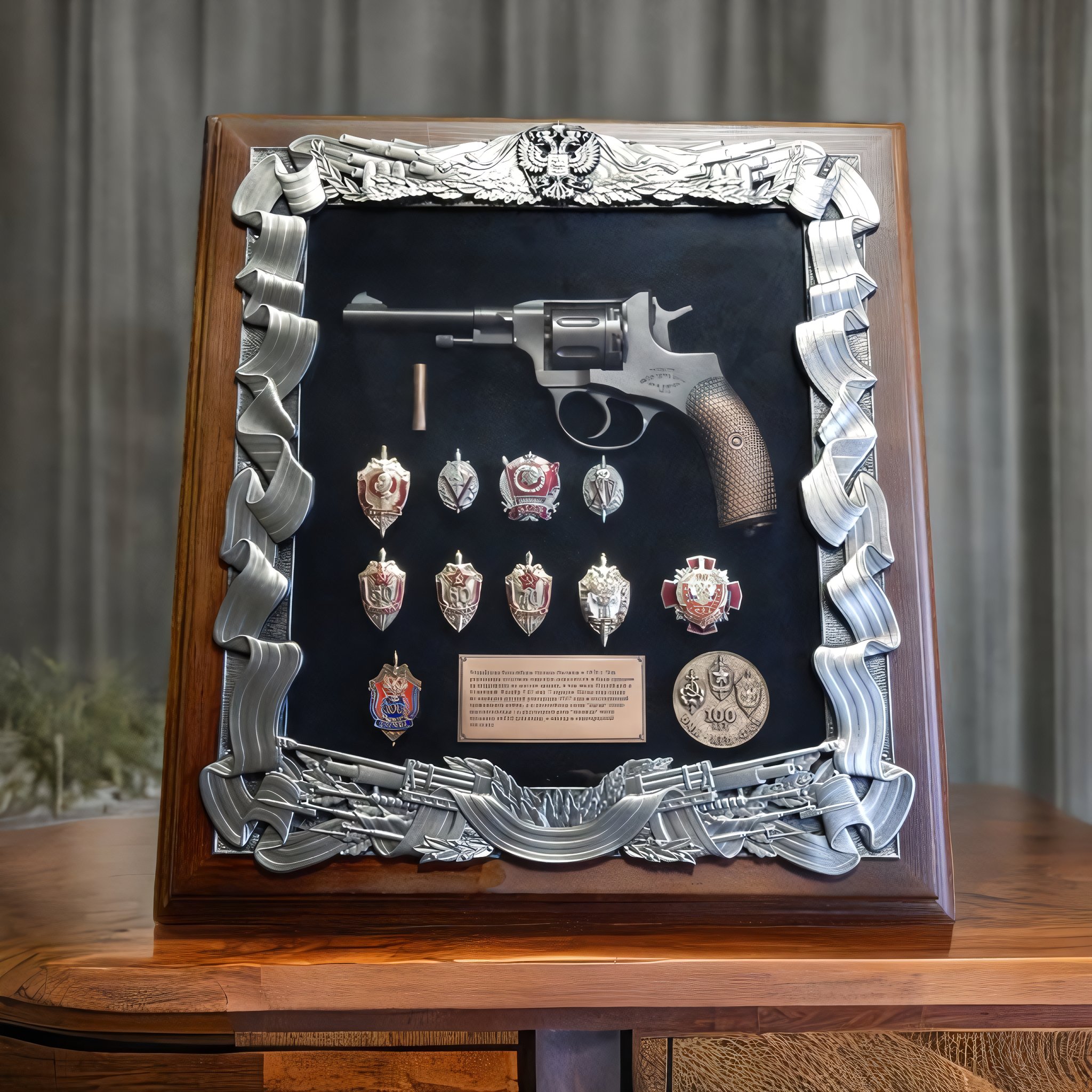 Панно с револьвером Наган и знаками ФСБ