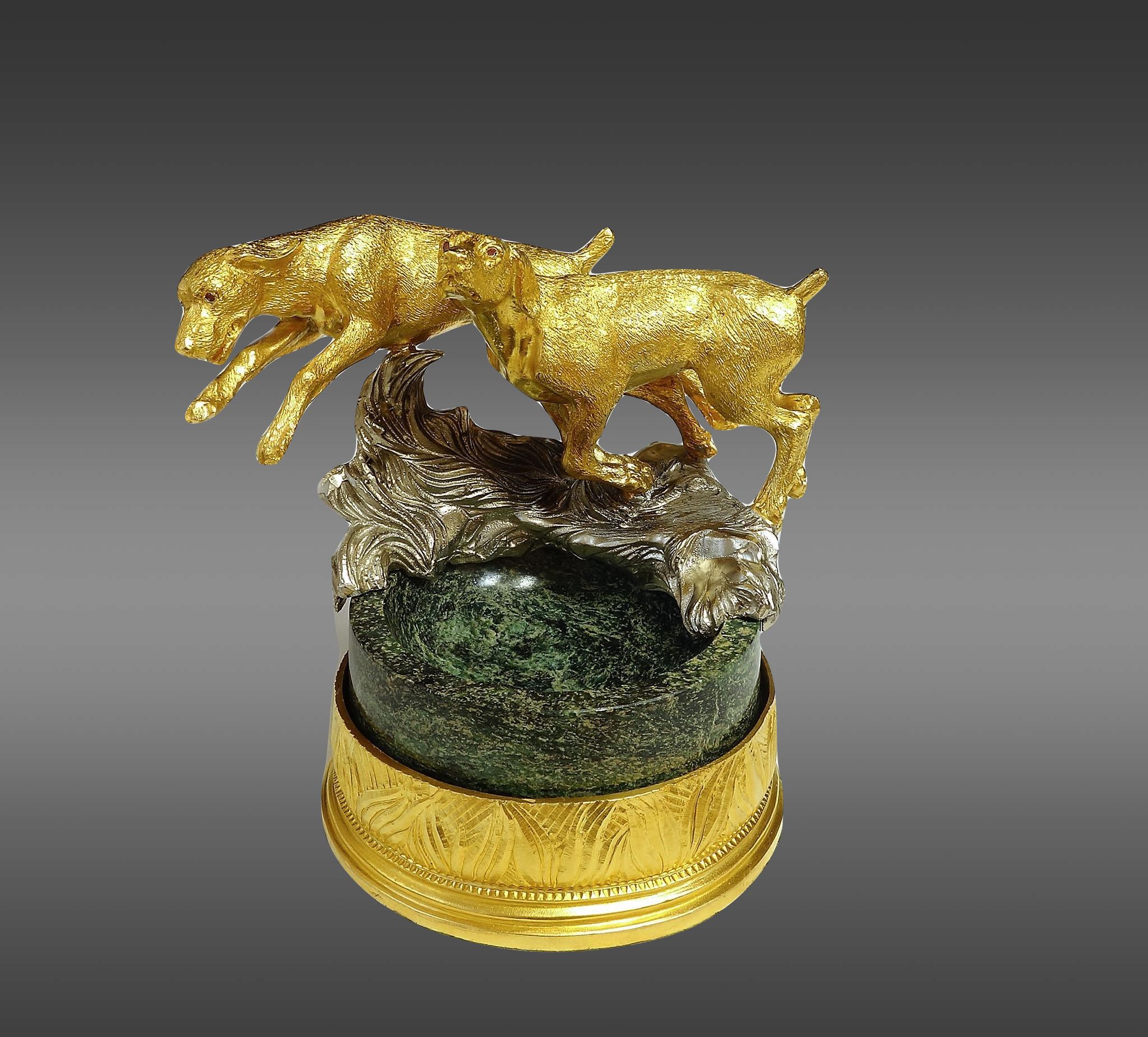 Пепельница "Гончие". Позолоченная