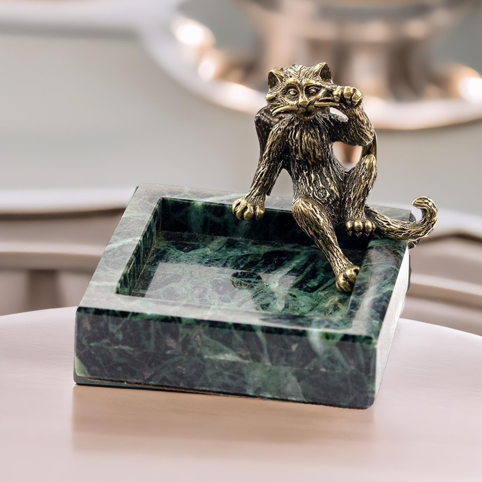 Сделана из прочных материалов — змеевик и бронза, данная пепельница — это не только практичный предмет, но и отличное украшение интерьера любой комнаты. |