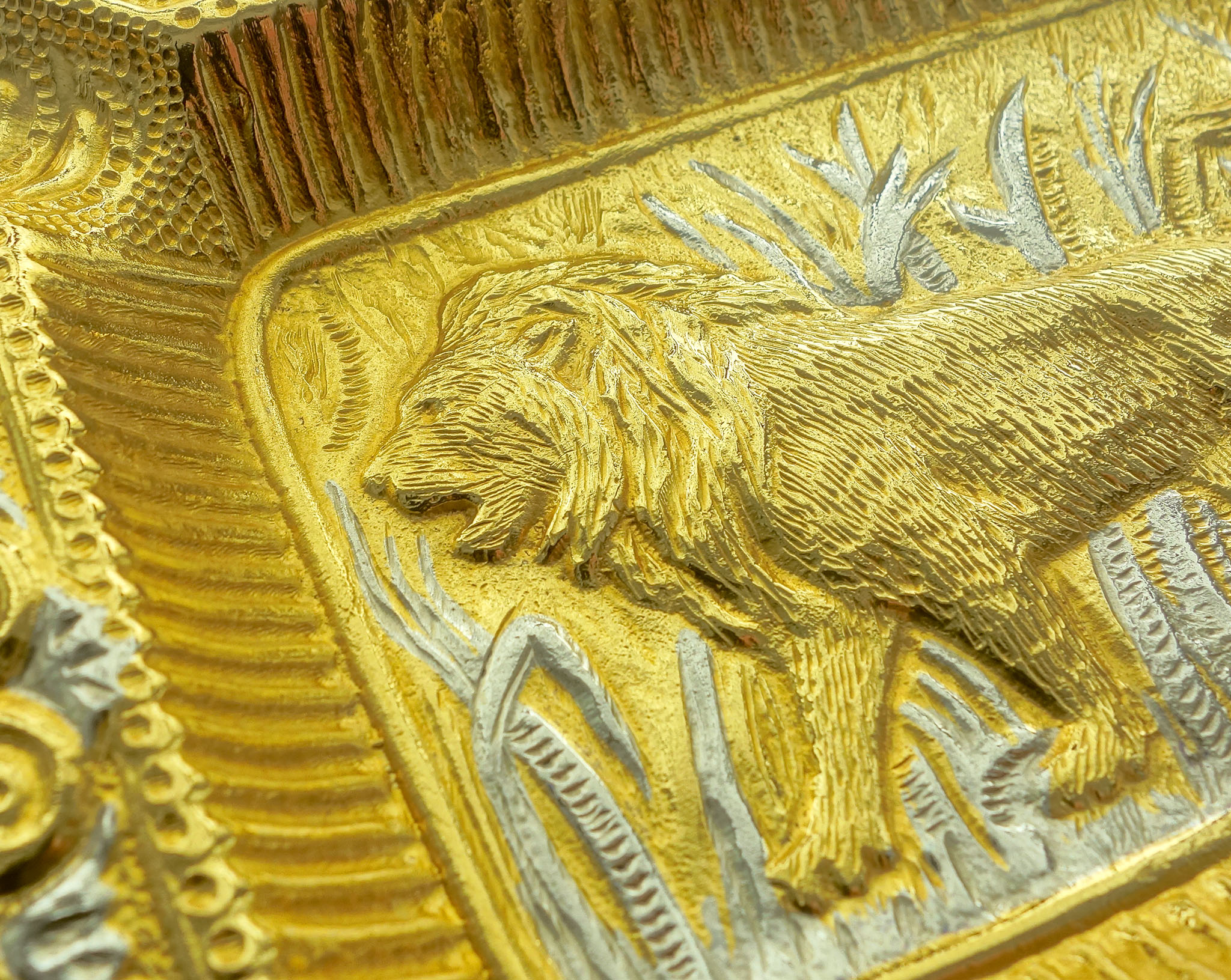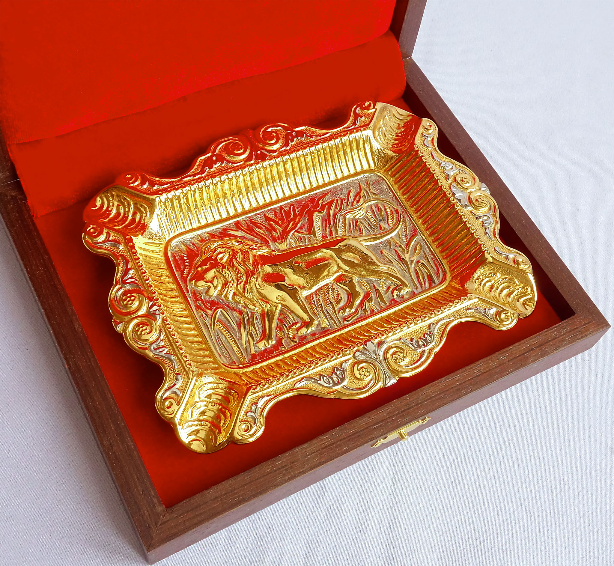 Украшенная позолотой пепельница "Лев" является настоящим произведением искусства. Бронзовое основание пепельницы украшено выразительным барельефом льва, символизируя мощь и величие этого царя зверей. Этот предмет интерьера может стать настоящим украшением вашего рабочего стола или гостиной. Отличный подарок для тех, кто ценит искусство, роскошь и уникальность вокруг себя. С такой пепельницей каждый перекур станет особенным. |