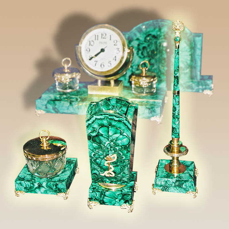 Письменный набор из малахита "Двуглавый орел". Златоуст