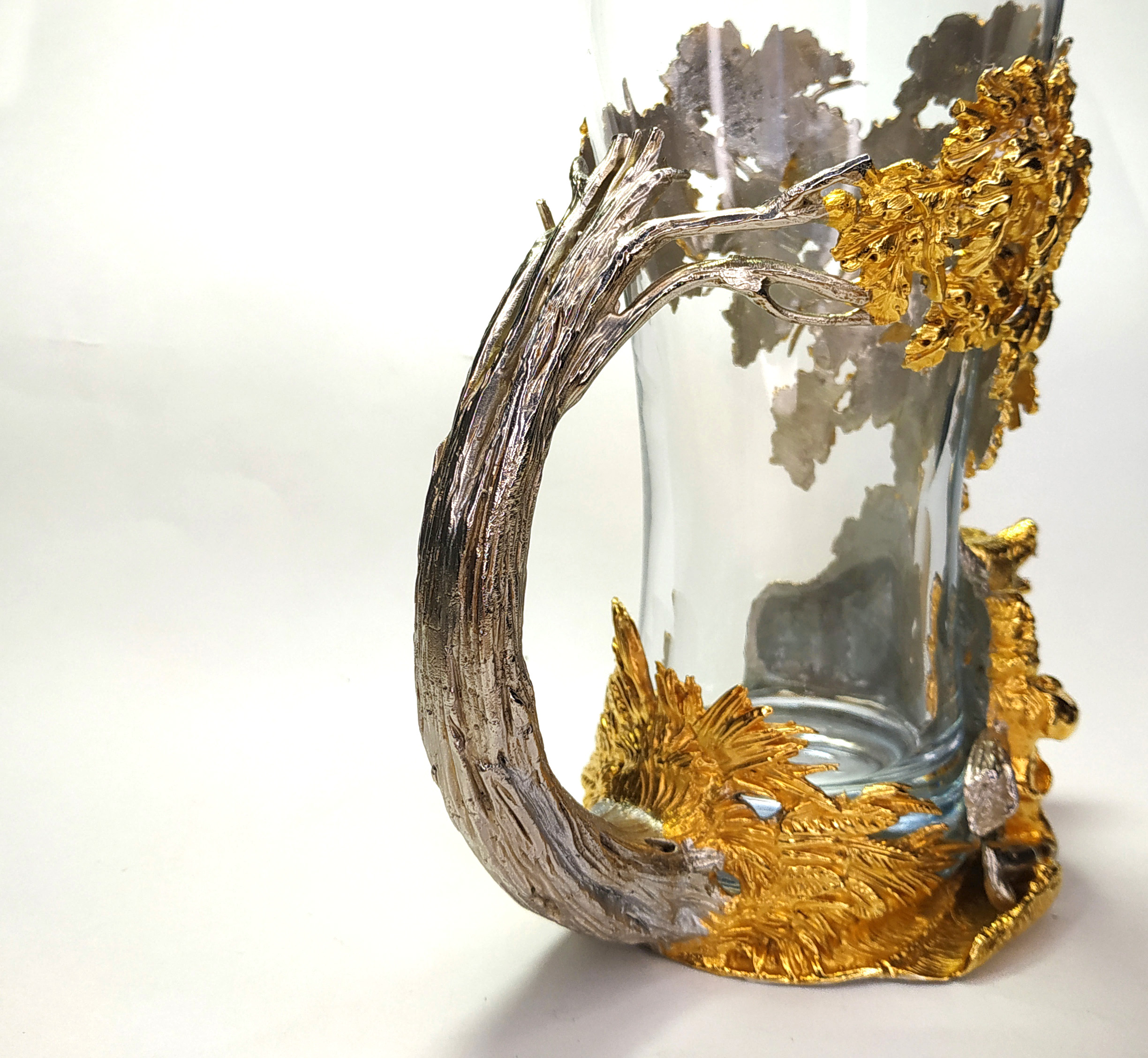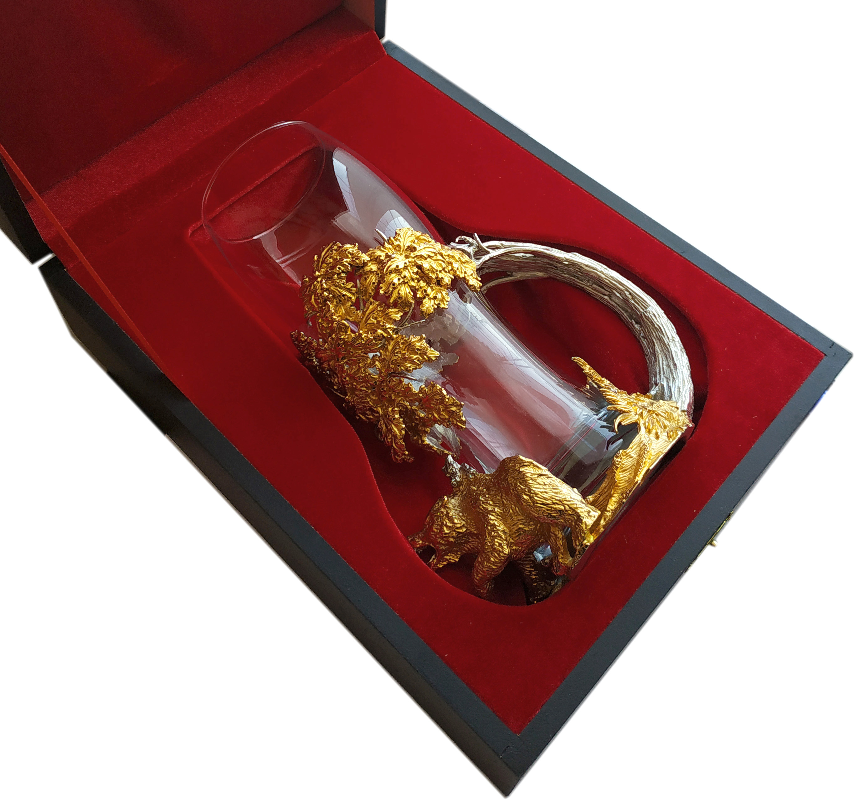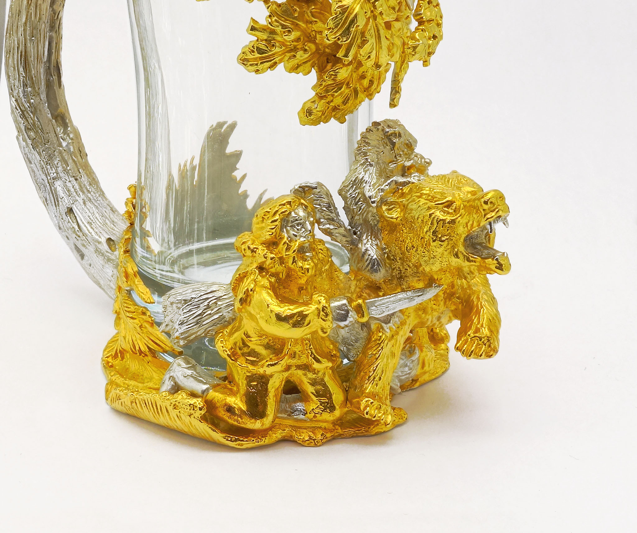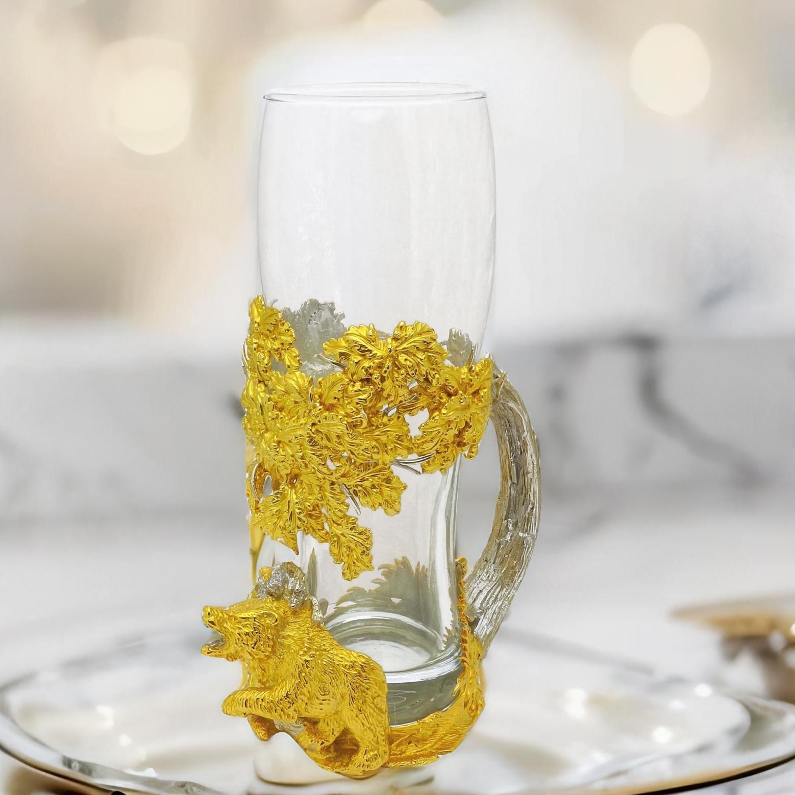 Мы гордимся тем, что можем предложить вам обладание настоящим произведением искусства — пивным бокалом, выполненным из бронзы и украшенным позолотой. «Охота на медведя» — не просто бокал для выпивки вашего любимого напитка. Детально проработанная сцена охоты на медведя перенесет вас во времена рыцарей и героических охотников. Обладая таким бокалом, вы почувствуете истинный вкус приключений каждый раз, когда будете наслаждаться своим пивом. Мы использовали метод позолоты для того, чтобы подчеркнуть все мельчайшие детали нашего бокала. Это придает изделию дополнительный блеск и помогает сделать каждую сцену живой и динамичной. «Будьте готовы к комплиментам и восхищенным взглядам, ведь этот бокал – не просто предмет интерьера, а настоящий произведение искусства!» |