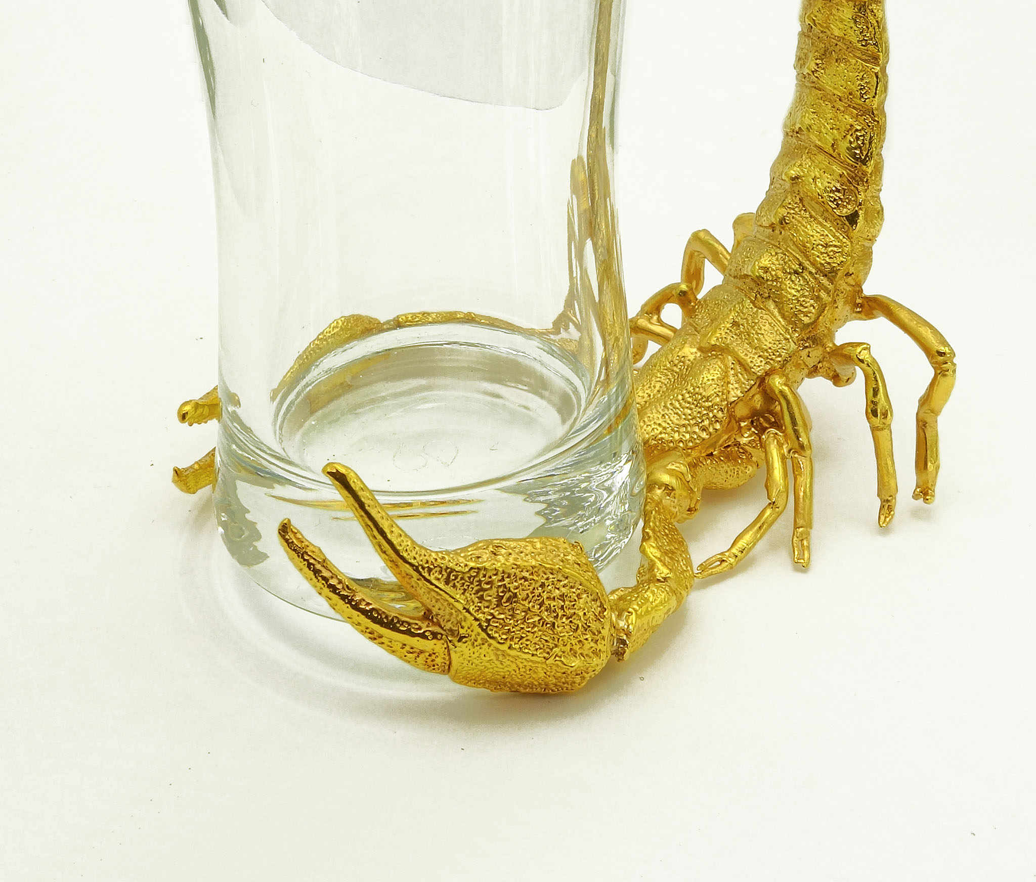 Представляем вашему вниманию эксклюзивный пивной бокал Скорпион. Выполненный из высококачественной бронзы и покрытый золотом, этот бокал станет ярким акцентом любого праздничного стола. Невероятный дизайн: Скорпион — это не просто бокал, это настоящее произведение искусства. Детально прорисованная фигурка скорпиона на столбике бокала точно привлечет внимание всех гостей. Премиальное качество: Бокал изготовлен из качественной бронзы и покрыт ламповым золотом, что добавляет ему изысканности и придаёт роскошный вид. Идеальный подарок: Такой бокал станет отличным подарком для любителей пива. Он удивит своим необычным дизайном и станет настоящим украшением коллекции. |