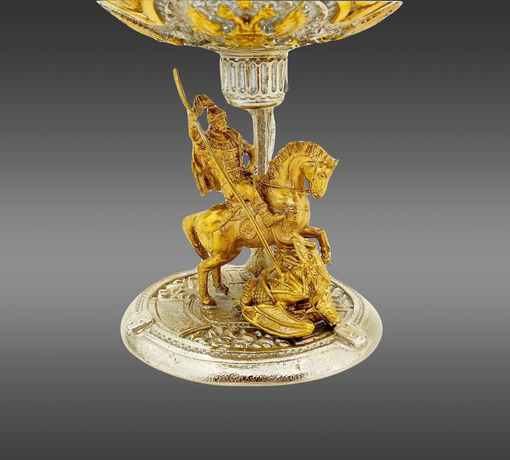 Величественный и значимый, бокал для коньяка "Георгий Победоносец" является трибьютом великому святому и покровителю воинов. Георгий Победоносец, украшающий этот бокал, изображен в боевом облике, уничтожающем дракона - величественная аллегория борьбы со злом. Такой бокал станет отличным подарком для людей, служащих в армии, или тех, кто ценит религиозные символы и героические истории. Ваше общение приобретет особый статус и атмосферу, когда вы будете пить из такого бокала. |