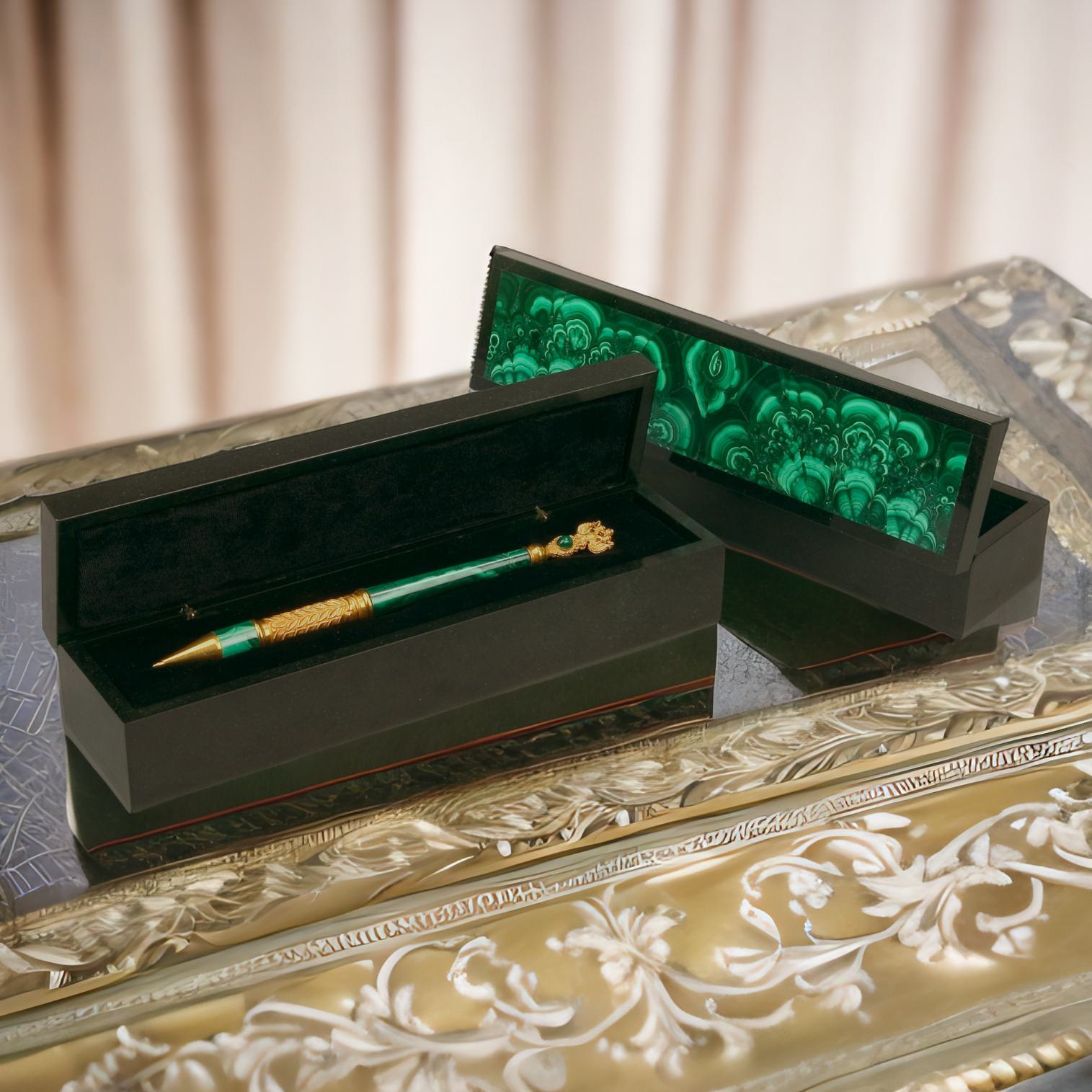 Вы ищете эксклюзивный и оригинальный подарок? Тогда ваш вниманию представляется подарочный набор — ручка в футляре! Футляр, выполненный из природных камней малахита и долерита, имеет уникальный, неповторимый рисунок, который придает ему особую ценность.