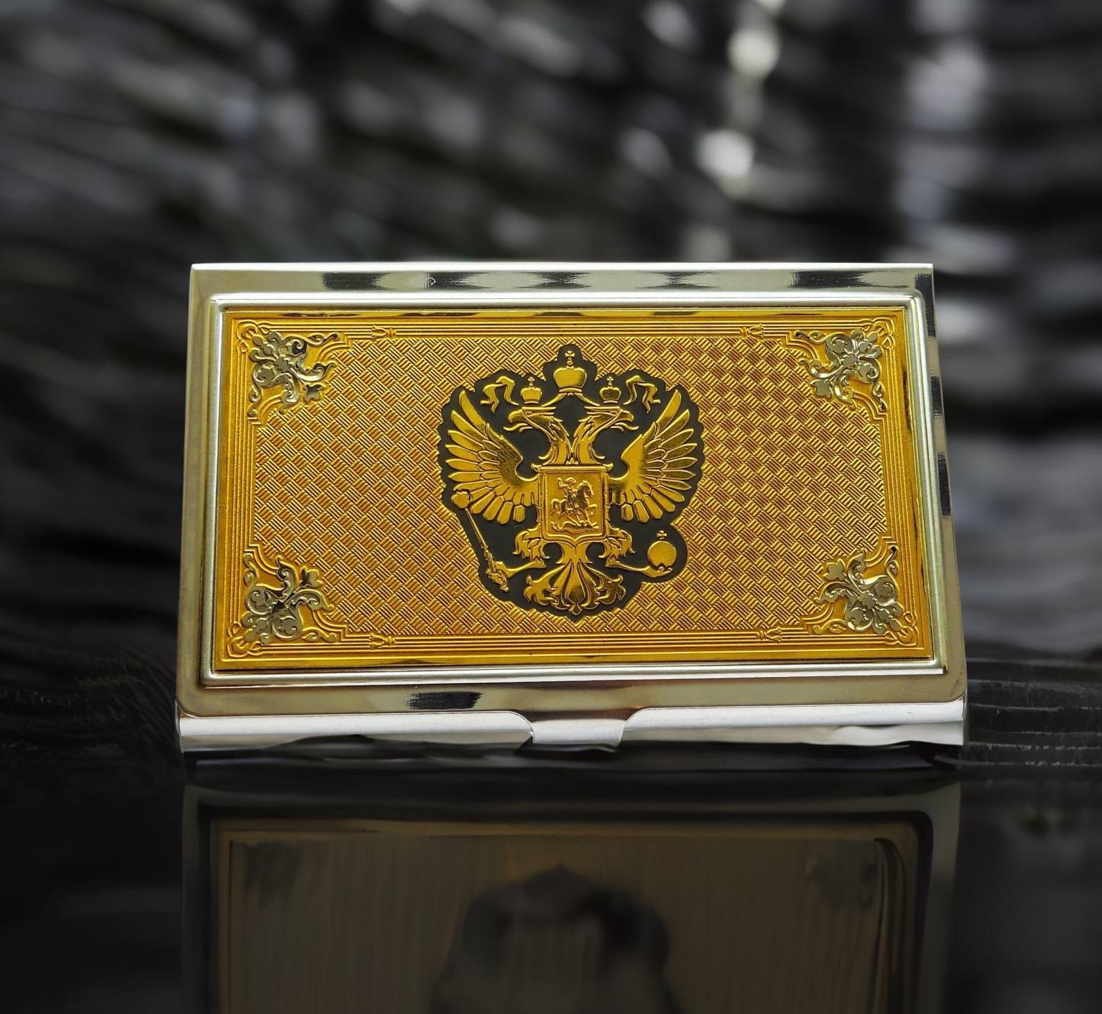 Утонченность и деловой стиль отличают подарок от Златоуста - "Визитница гербовая". Эта визитница станет отличным и значимым подарком для делового человека. Гербовая визитница воплощает в себе традиции и культуру России, а также представляет собой идеальный аксессуар для хранения визитных карточек. Украшена она гербом России, что подчеркивает ее официальность и презентабельность. Визитница выполнена из металла, что гарантирует ее долговечность и изысканный вид. Она поможет подчеркнуть статус и вкус своего владельца. |