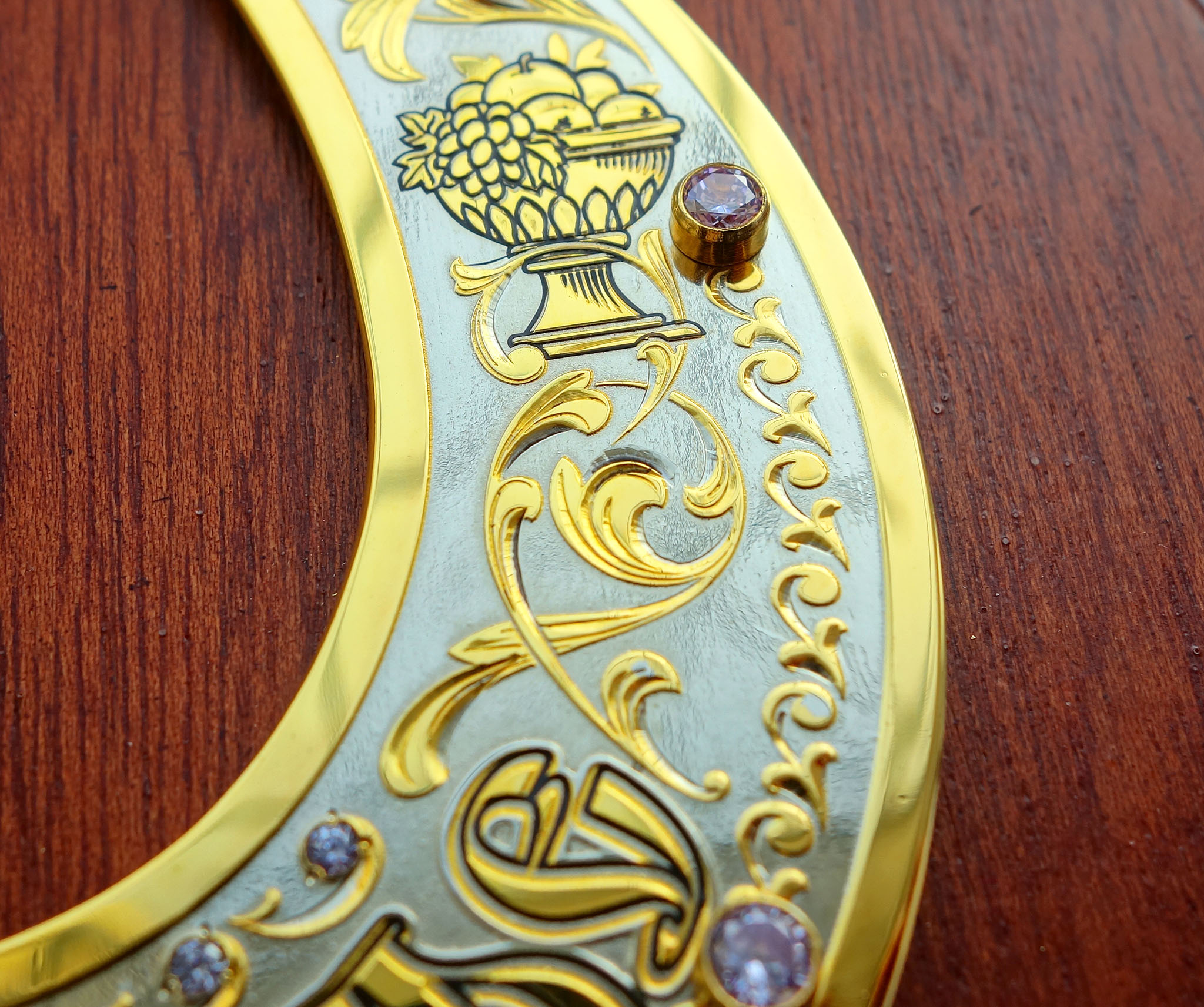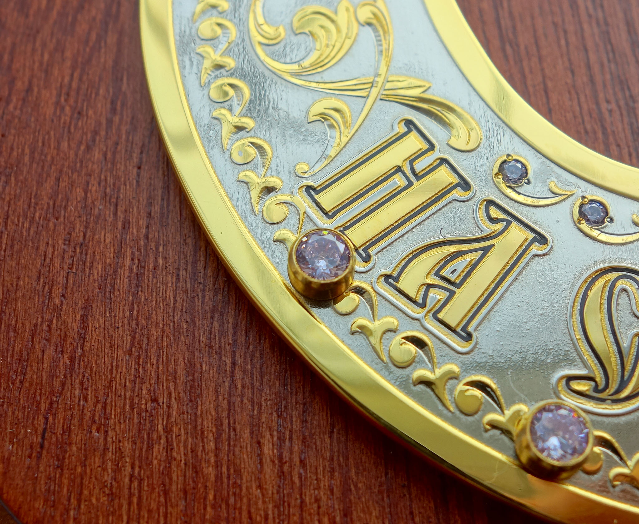 Это прекрасная настенная подкова "На счастье", которая была изготовлена в Златоусте. Она украшена блестящими фианитами, которые добавляют изделию особого шарма и блеска. На подкове выгравирована надпись "На счастье", что делает ее отличным подарком для любого случая. Подкова является символом удачи и благополучия, поэтому она станет значимым и ценным подарком для ваших близких, друзей или коллег. Идеально подойдет для тех, кто хочет привнести в свою жизнь немного удачи или просто украсить свой интерьер оригинальным образом. |
