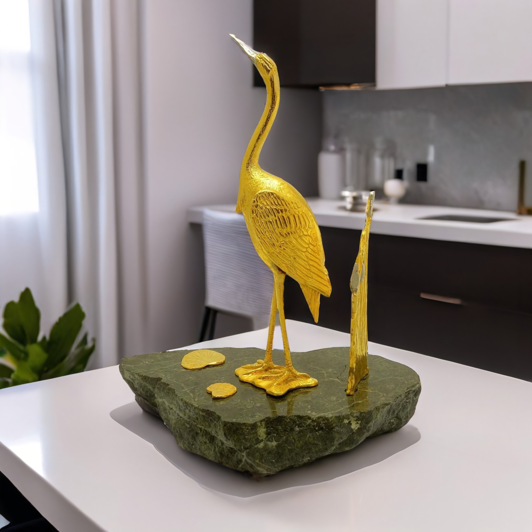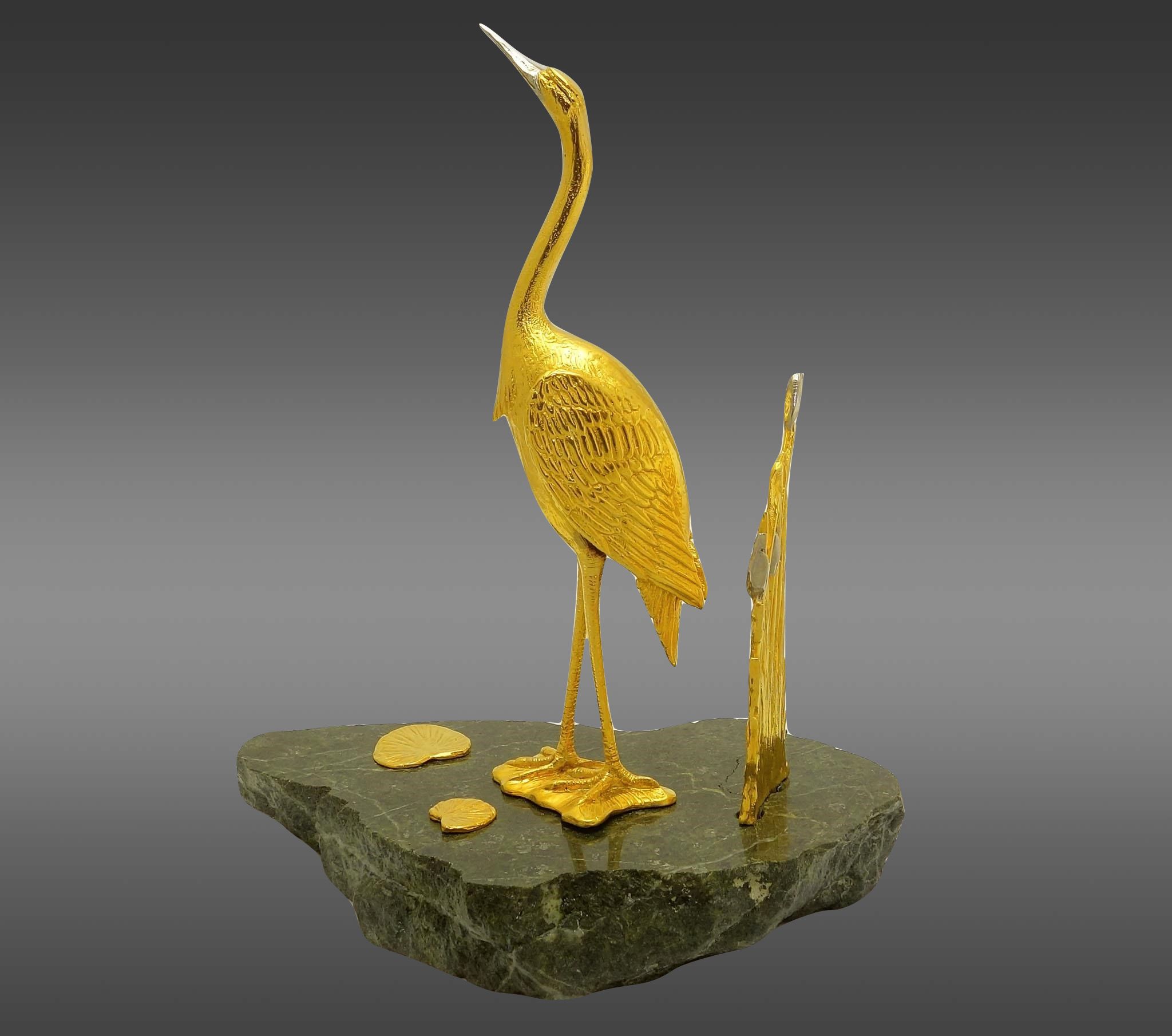 Стильная и оригинальная бронзовая статуэтка 'Цапля для колец' — это не только красивый элемент декора, это еще и удобное место для хранения ваших украшений. С ее помощью вы сможете придать уникальность своему пространству и подчеркнуть вашу эстетику. Наша бронзовая цапля станет достойным акцентом на любом туалетном столике, полочке или комоде. Изящество осанки, изгибы шеи и гибкости ноги — все эти детали выделяют эту статуэтку среди прочего декора.
