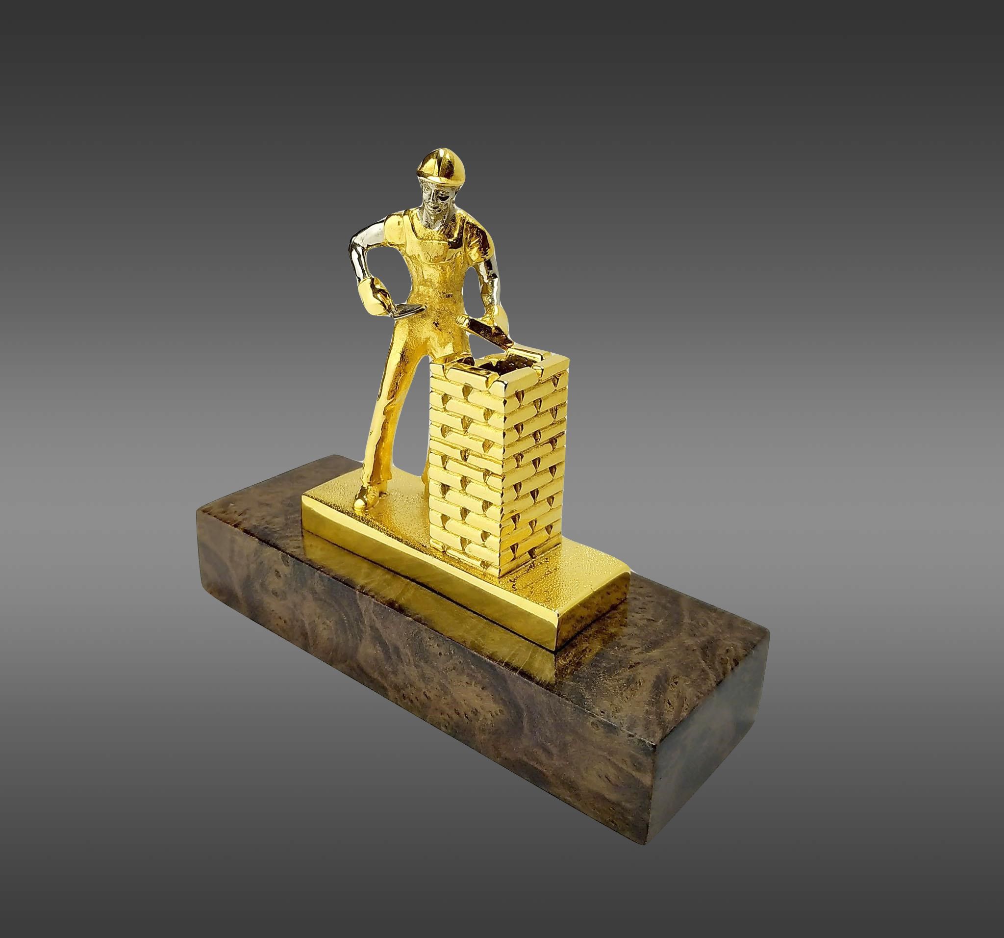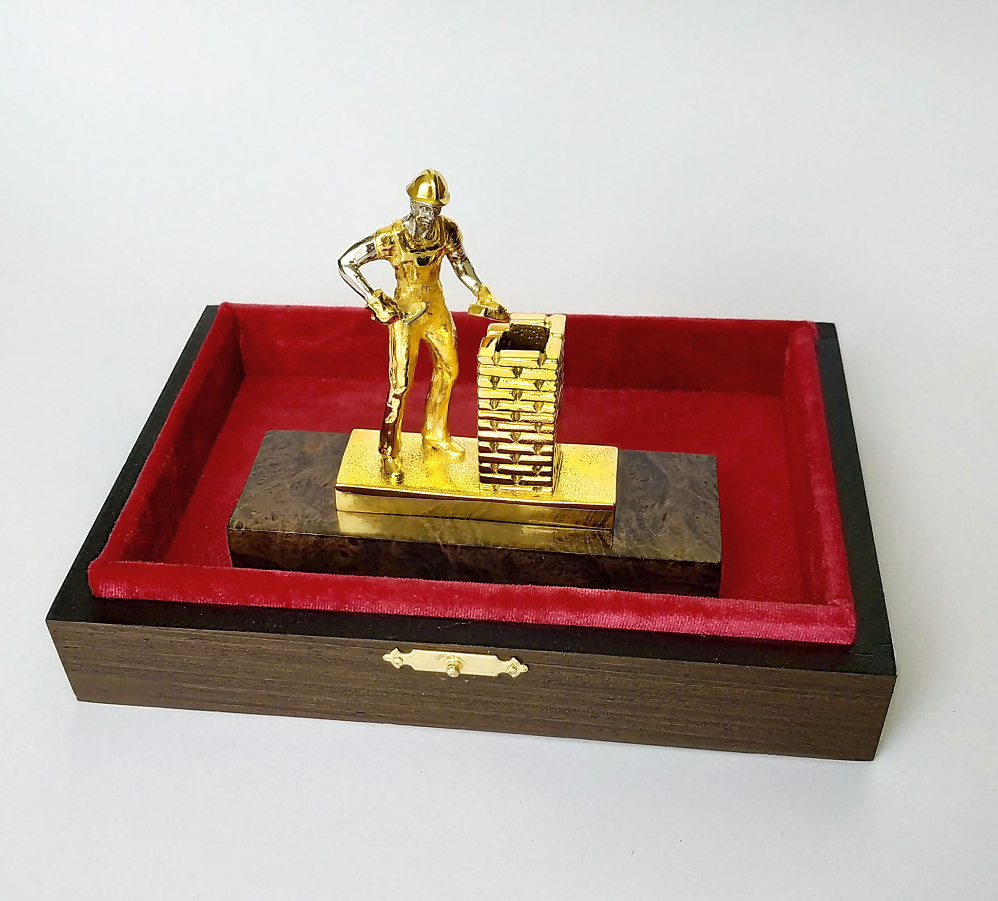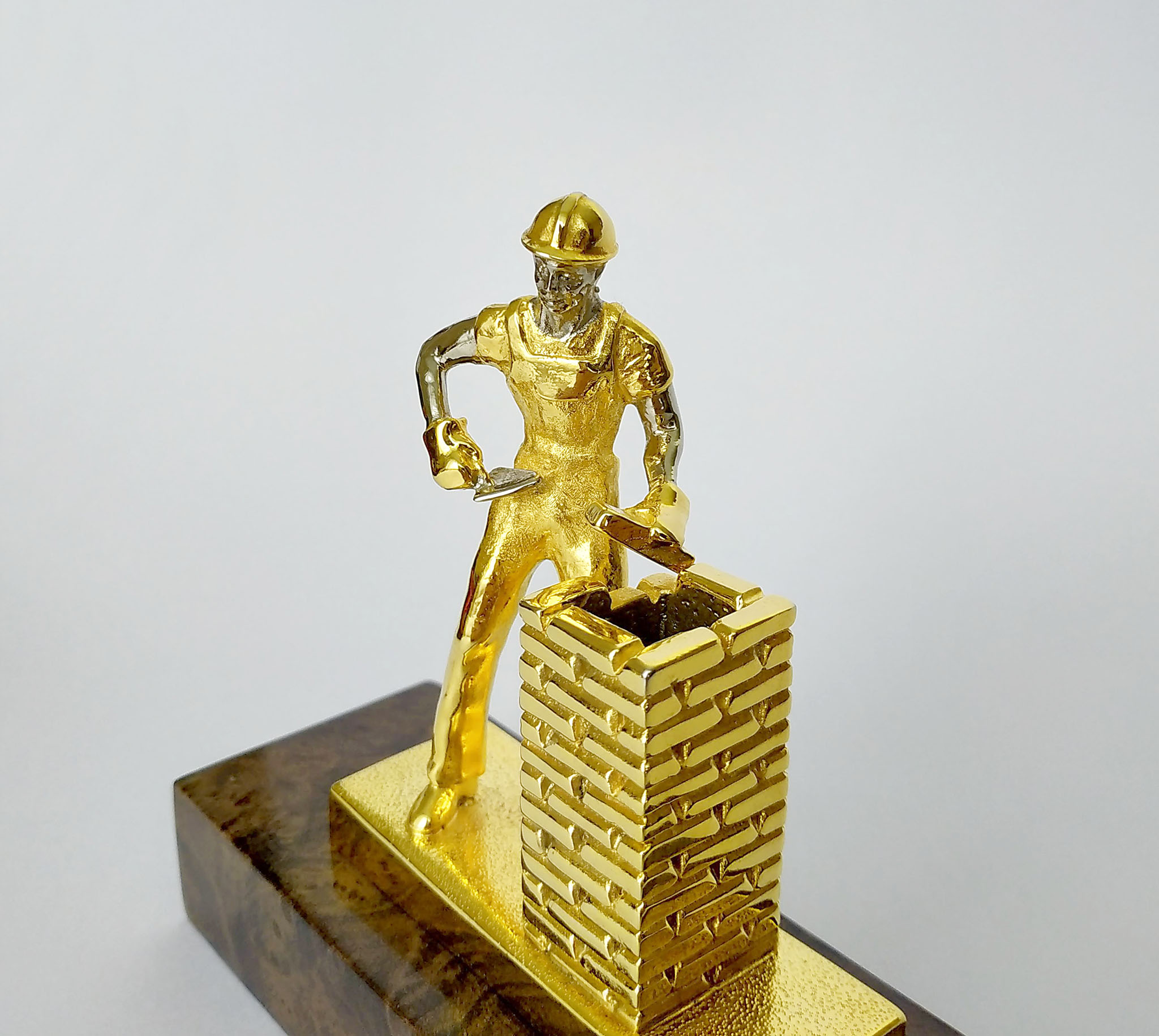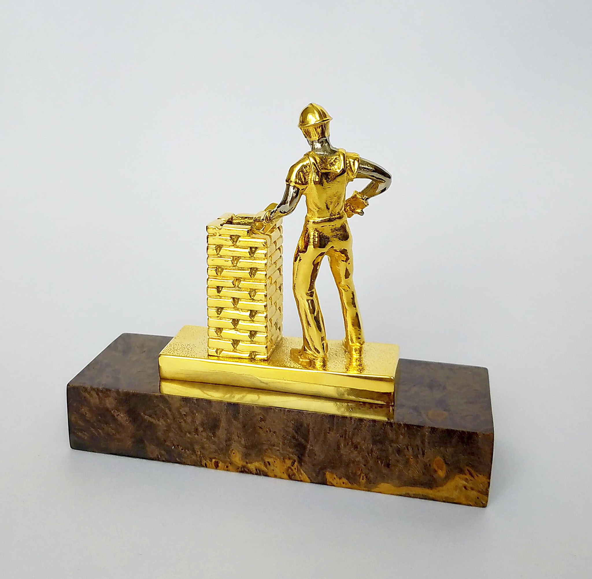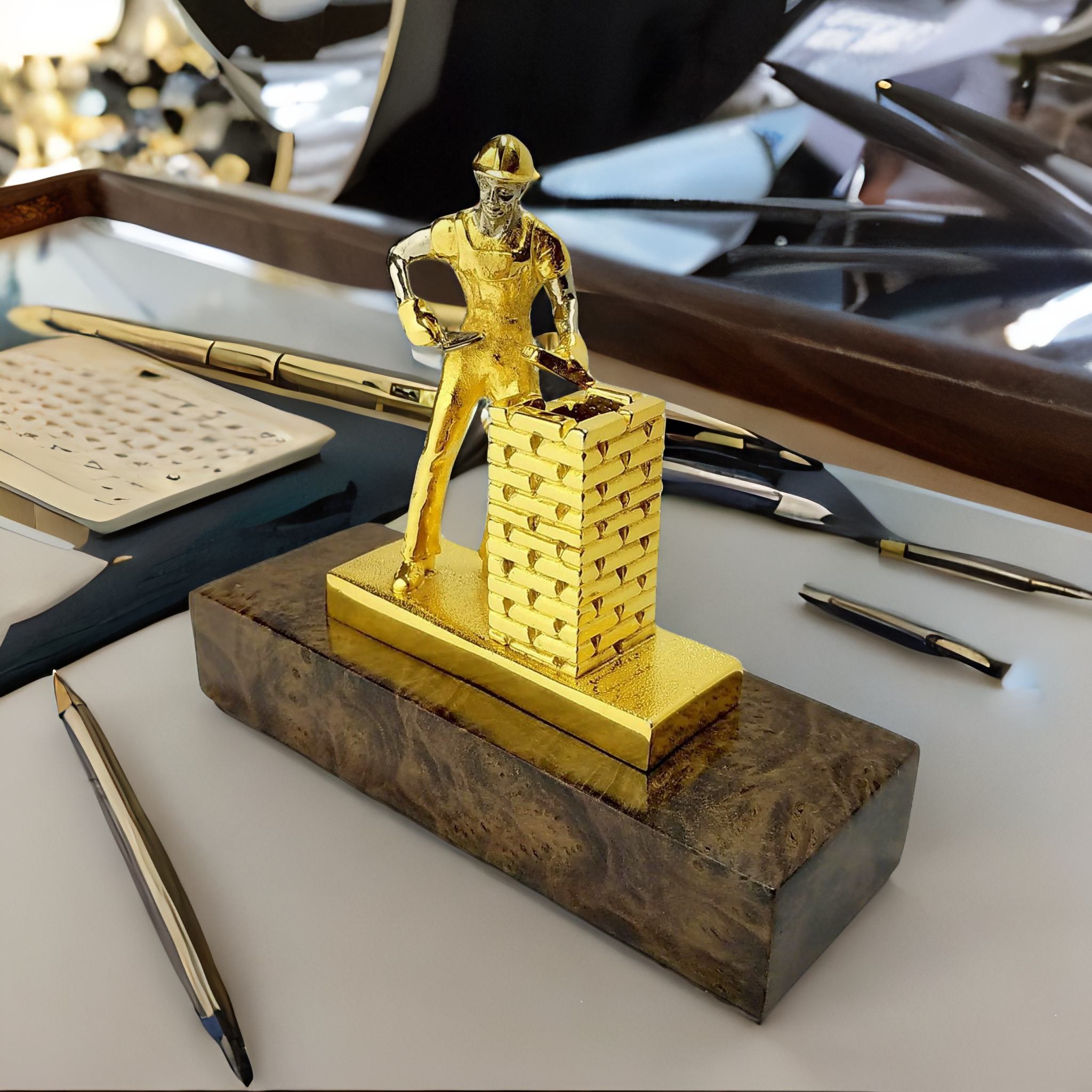 Подставка под ручку "Строитель" представляет собой не просто утилитарный предмет, но и настоящее произведение искусства. Основание из долерита служит фоном для фигурки строителя с мастерком, занятого кладкой кирпичей. Позолоченные элементы добавляют элегантности и выразительности. Эта подставка может стать отличным подарком для строителей, архитекторов или любителей необычного дизайна. |