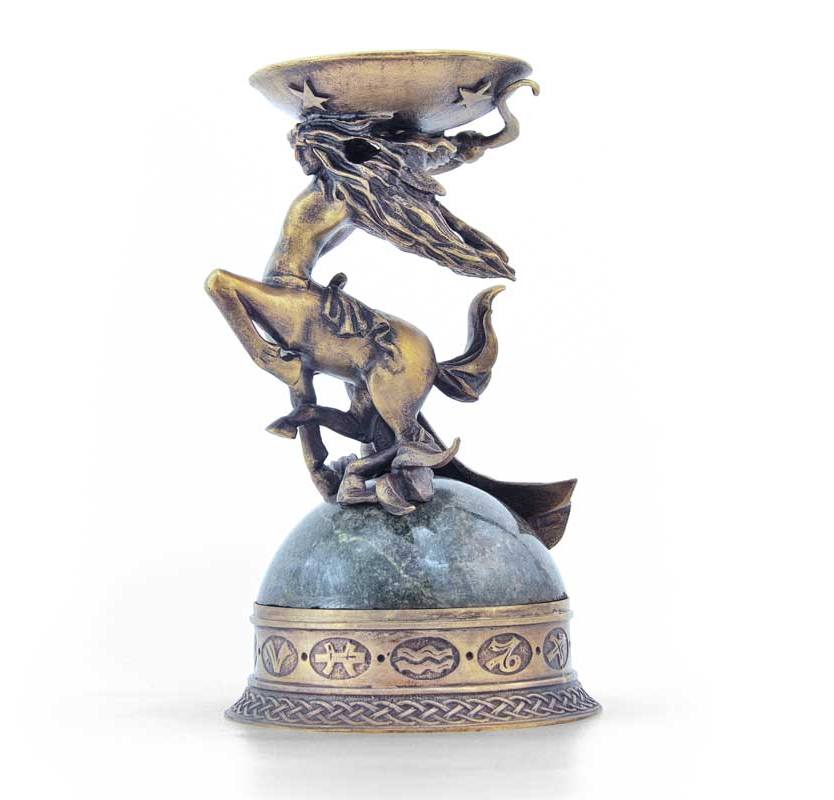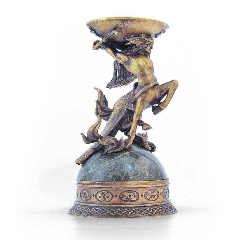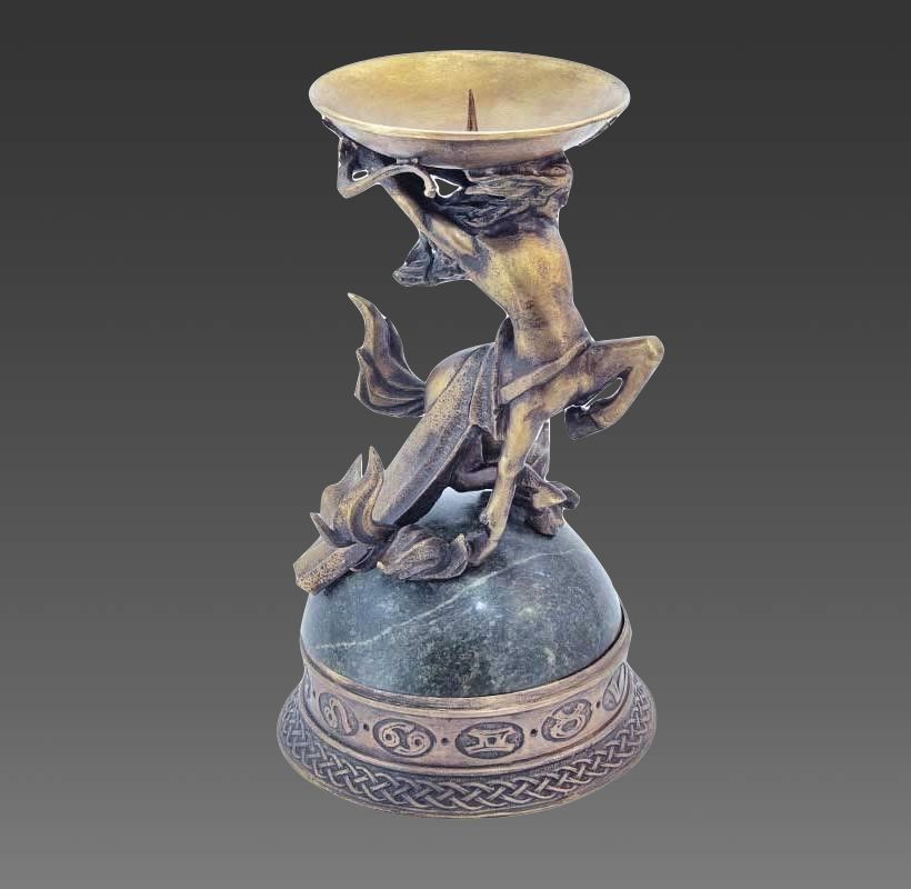 Представляем вашему вниманию эксклюзивный товар — декоративный подсвечник выполненный из бронзы и змеевика в тематике знака зодиака — Стрелец. Этот уникальный подсвечник станет отличным украшением для вашего дома или подарком для близкого человека. С его помощью вы сможете создать уютную атмосферу, подчеркнуть свой индивидуальный стиль и увлечение астрологией. Красота бронзы и змеевика, изящество форм и суверенность исполнения — все это делает наш подсвечник по-настоящему уникальным предметом декора. Подсвечник Стрелец — это другой, совершенно новый взгляд на привычные вещи.