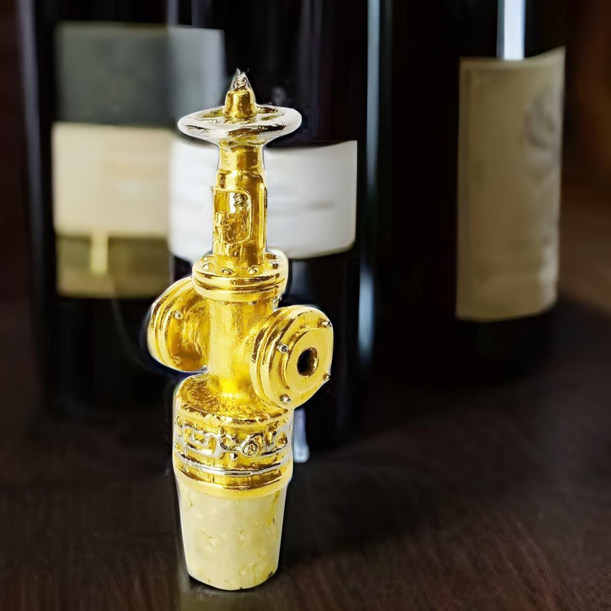 Представляем Вашему вниманию исключительную новинку в мире аксессуаров для вина — пробка для бутылки Задвижка. Это стильный и оригинальный аксессуар, выполненный из бронзы с золочением, художественно оформленный в виде миниатюрной фигурки вентиля на трубопроводе.