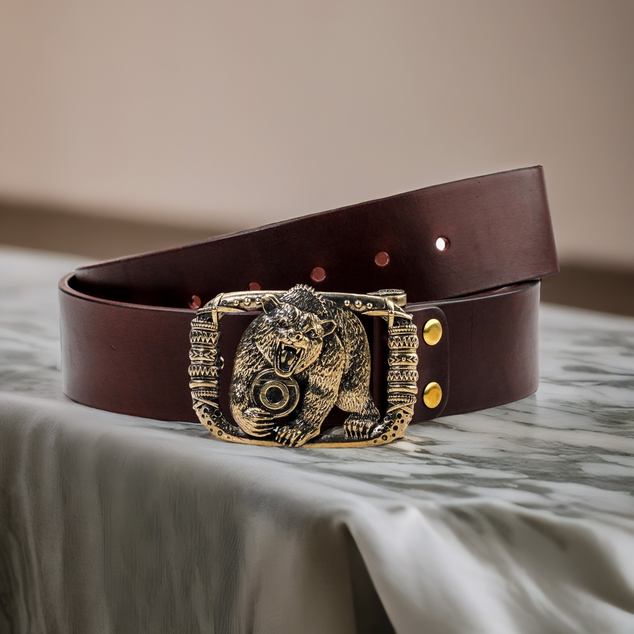 Ремень кожаный с пряжкой "Чертог медведя"