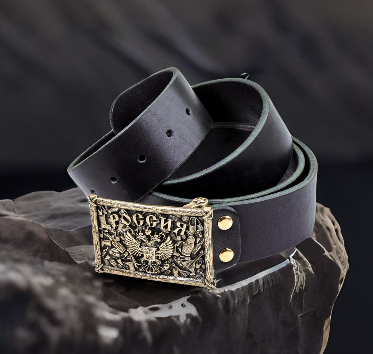 Ремень кожаный с пряжкой "Герб РФ"