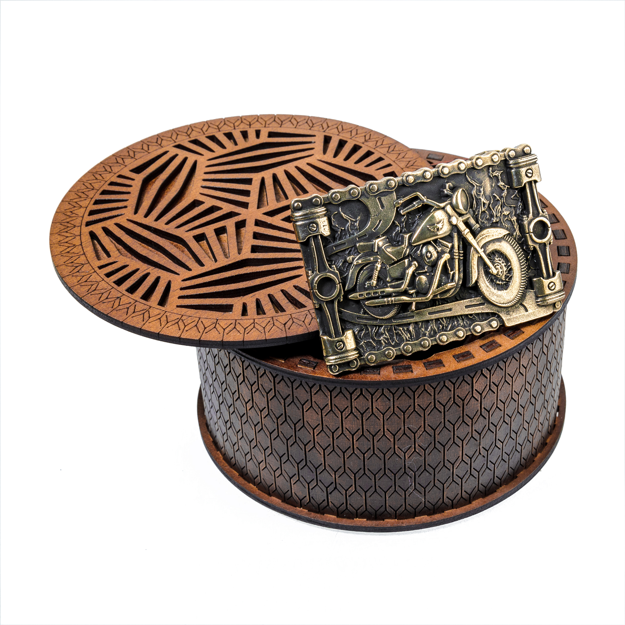 Ремень из натуральной кожи высокого качества с пряжкой, на которой изображен тяжелый классический круизер Kawasaki 1500, выпускавшийся с 1996 по 2004 год. Мотоцикл выделяется широким рулем и низким седлом, а также отличной работой подвески, что обеспечивает комфорт при езде. Ремень придется по вкусу любителям скорости и мотоциклов, послужив необычным подарком. |