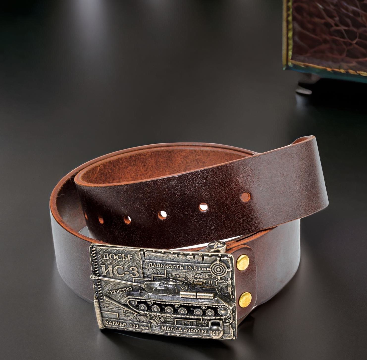 Ремень кожаный с пряжкой "Танк"