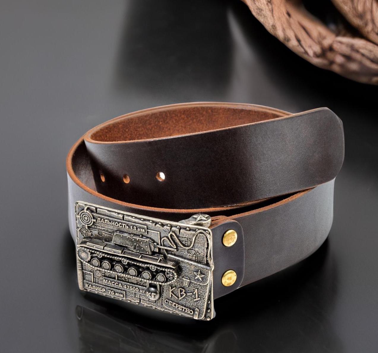 Ремень кожаный с пряжкой "Танк"
