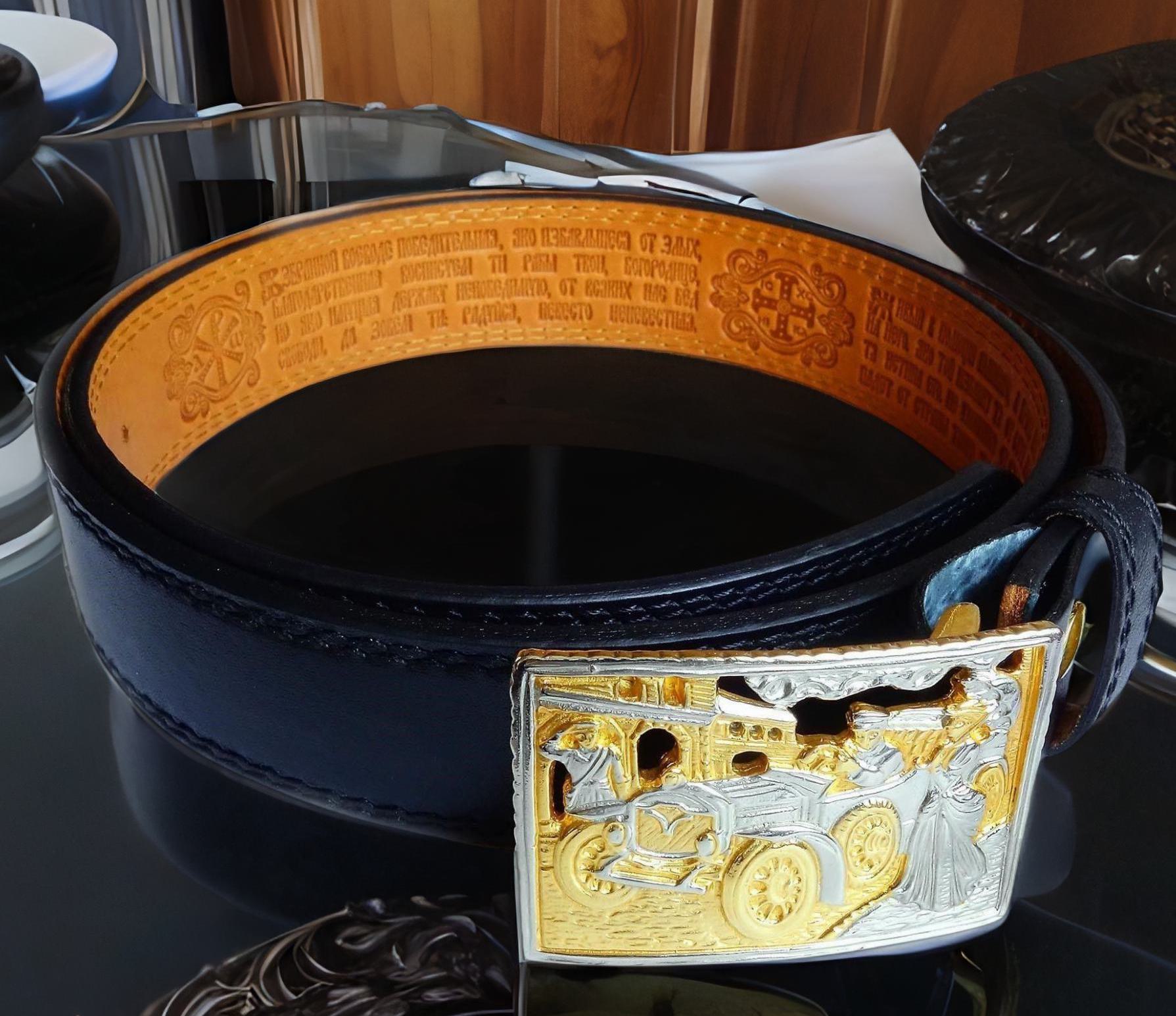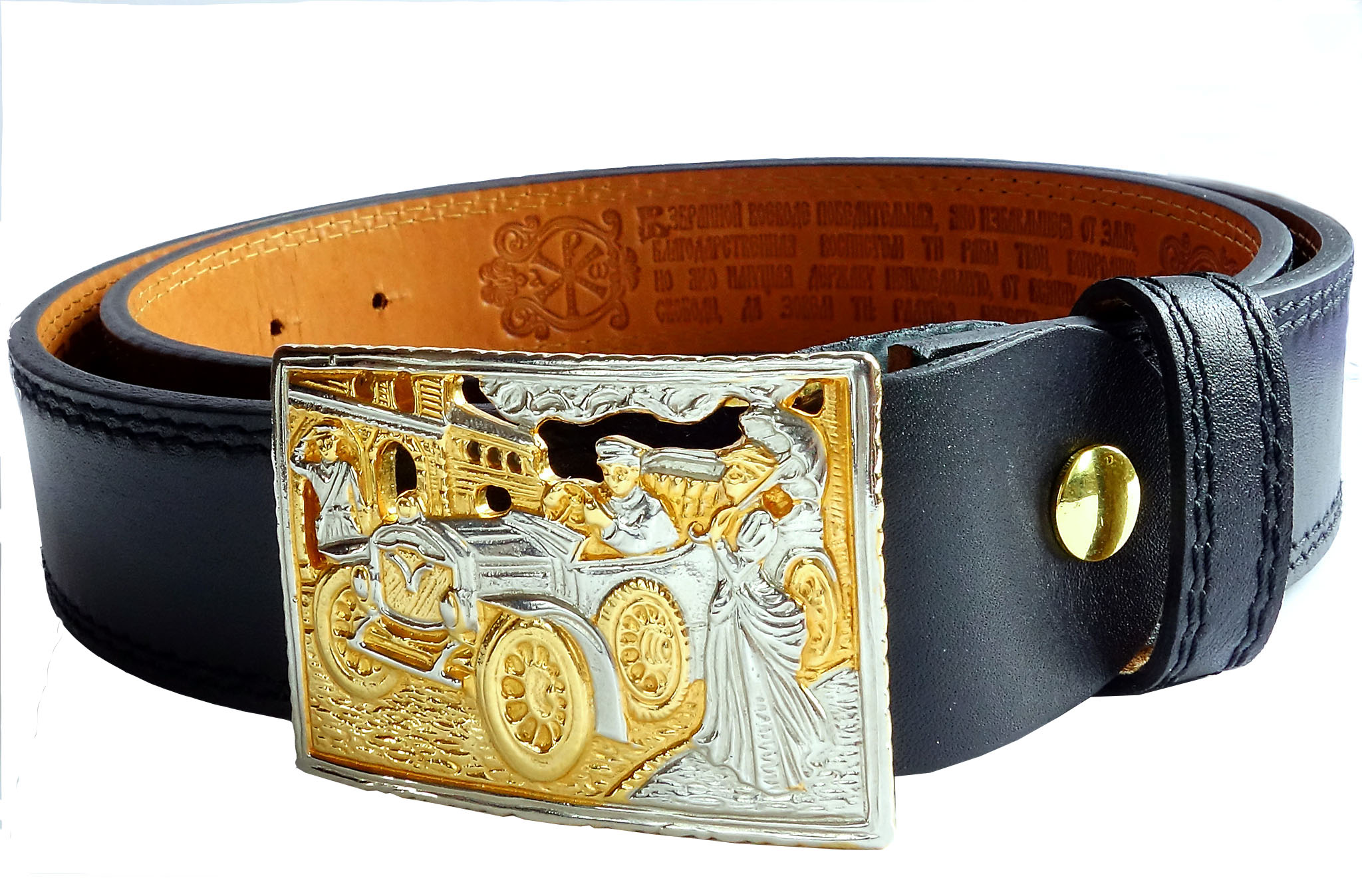 Кожаный ремень с бляхой "Извозчик". Позолота