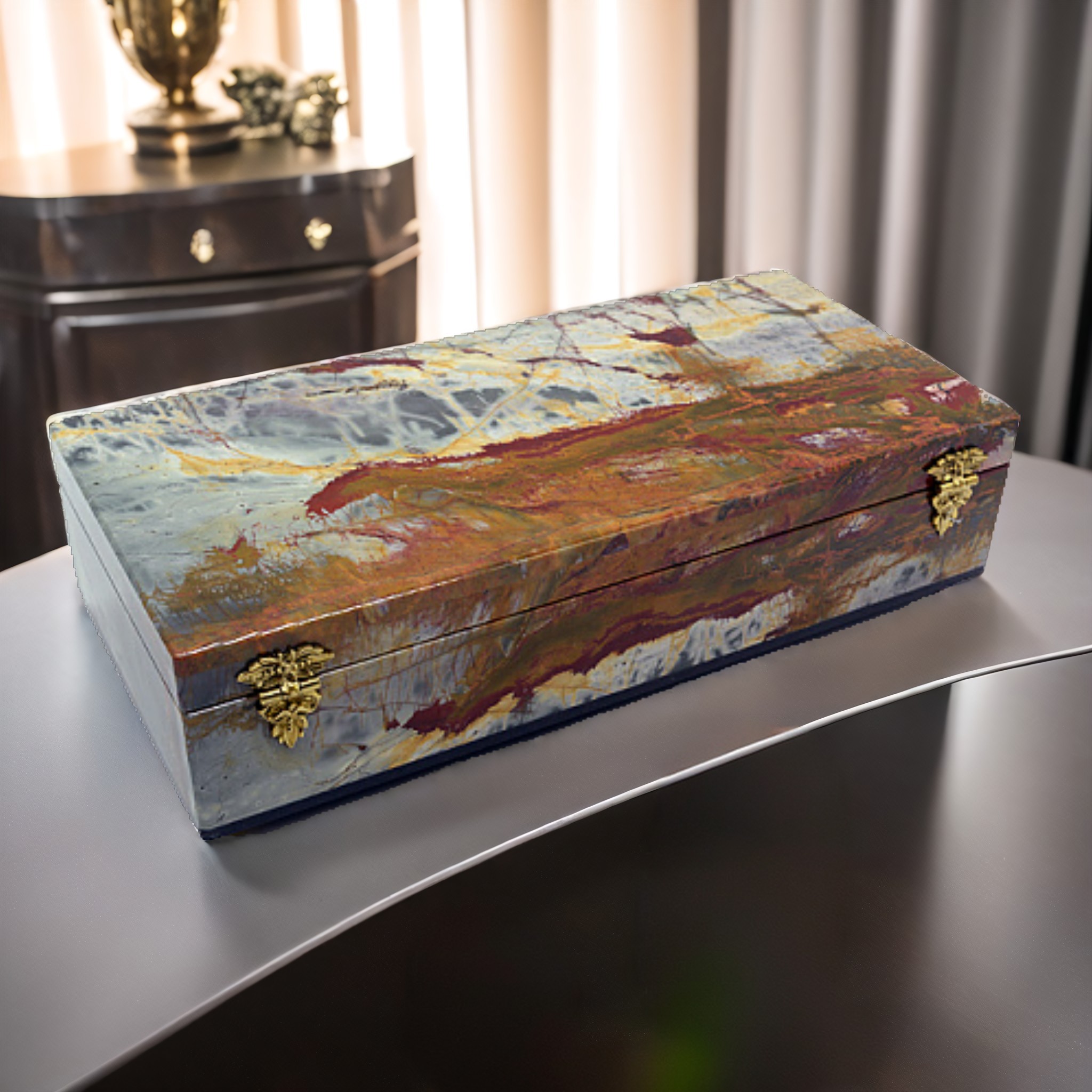 Поиск идеального подарка или уникального элемента декора для вашего дома никак не заканчивается? Наша шкатулка из натурального камня — это то, что вы искали! Выполненная из качественного, экологически чистого материала, эта шкатулка несет в себе частичку настоящей природы. Каждая шкатулка имеет свой уникальный узор, поэтому ни одна модель не повторяет другую!