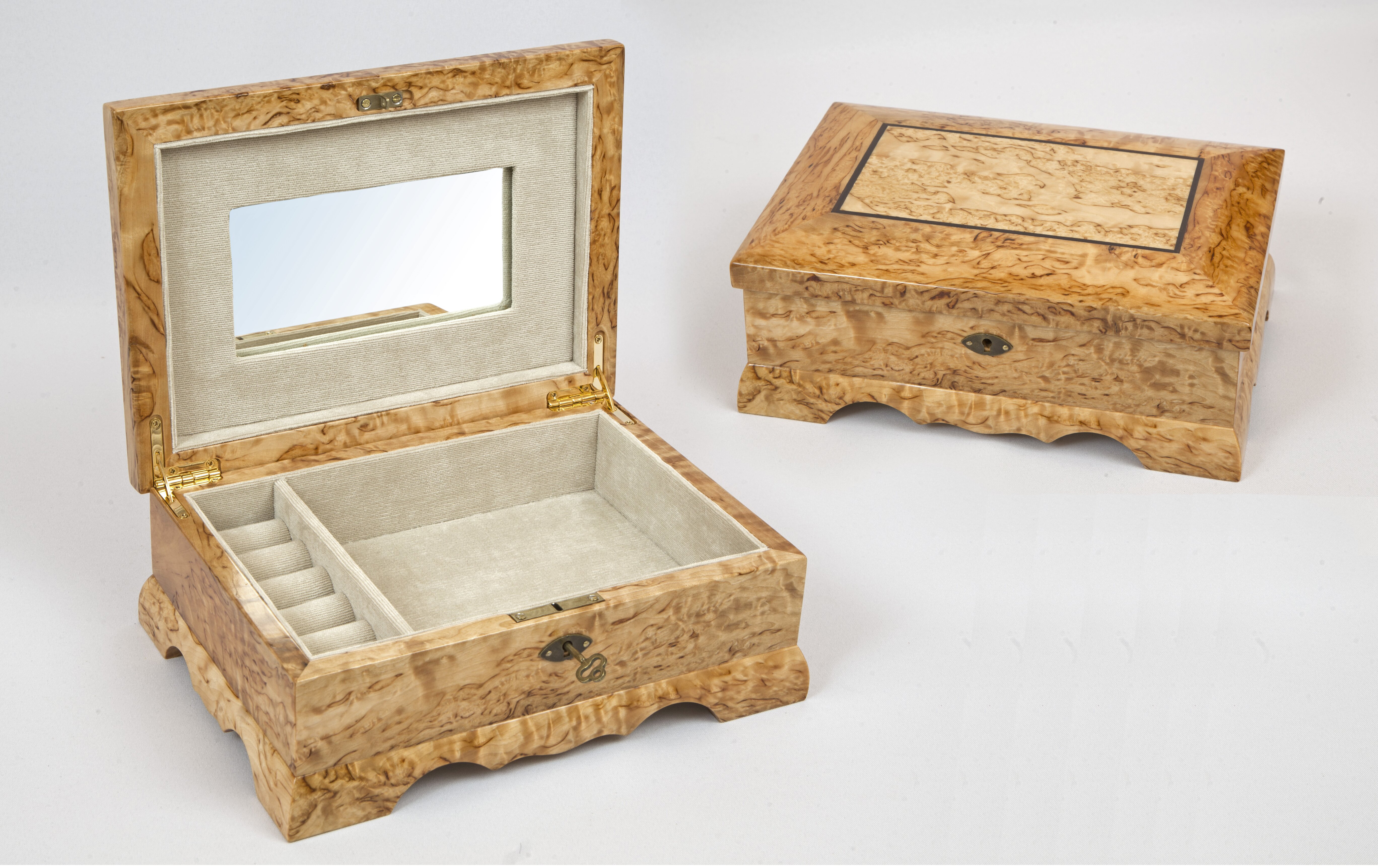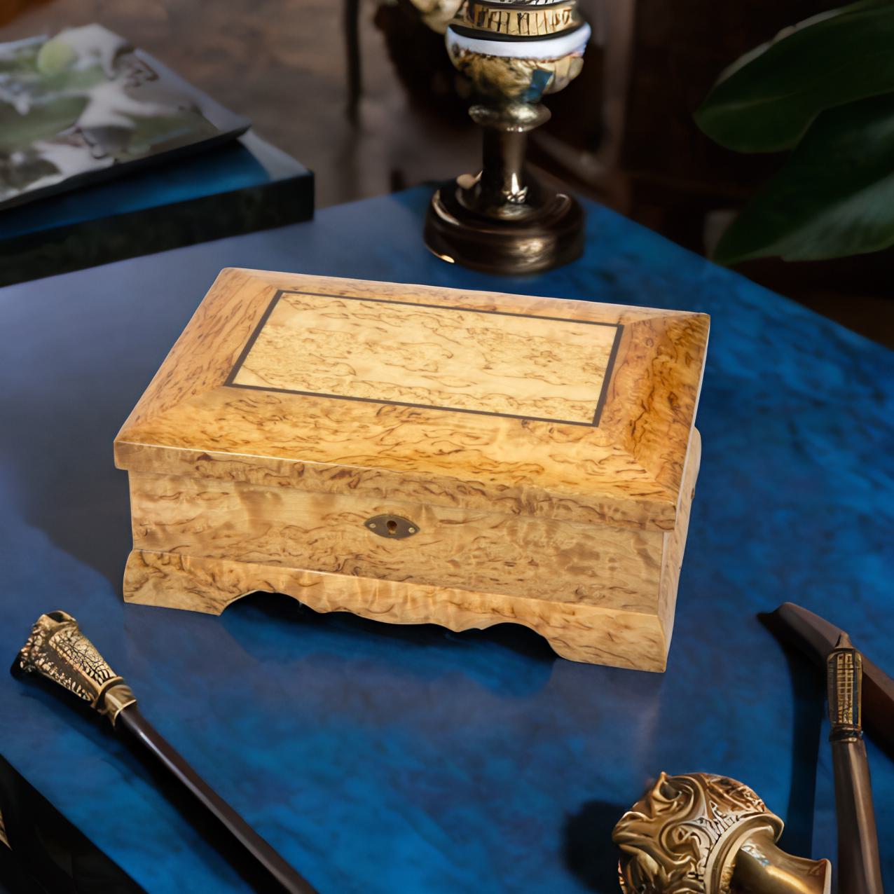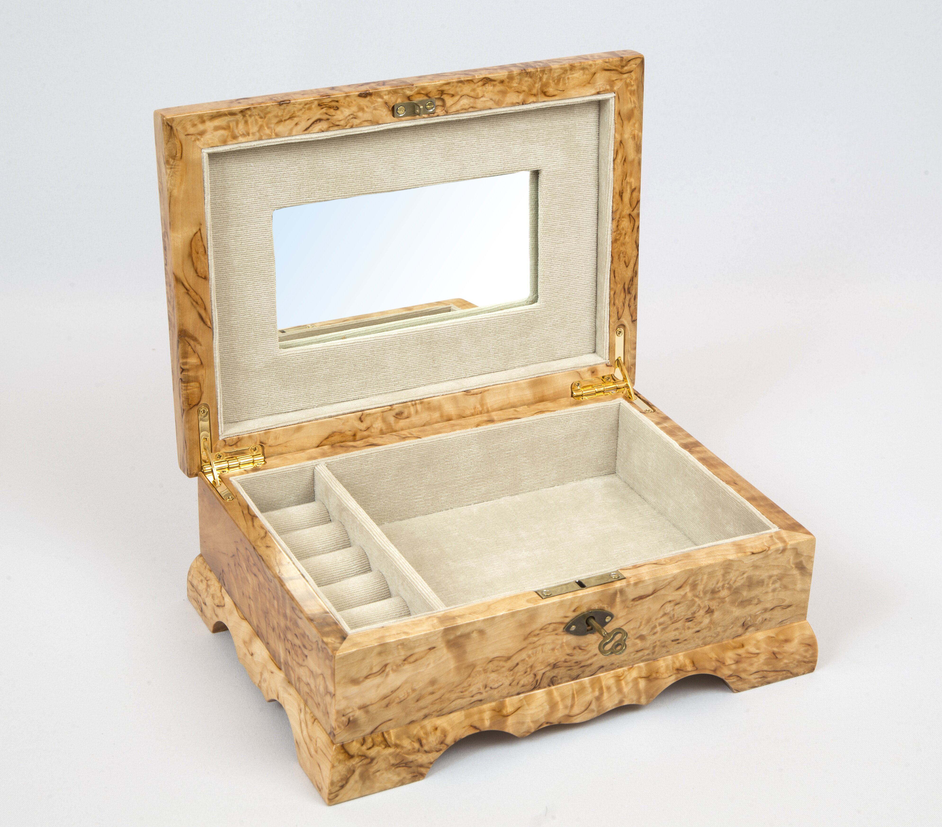 Дорогие дамы! Мы представляем вашему вниманию шкатулку для украшений из дерева с зеркалом. Это не просто функциональная вещь, это настоящий элемент декора из изысканного карельского дерева, который создаст уют в вашем доме и станет вместилищем ваших ценных украшений. Карельская береза известна своей плотностью и уникальным рисунком древесины, который превращает каждую шкатулку в уникальное произведение искусства. Каждая шкатулка создается с любовью и вниманием к деталям, что делает ее идеальным подарком к любому праздничному событию.