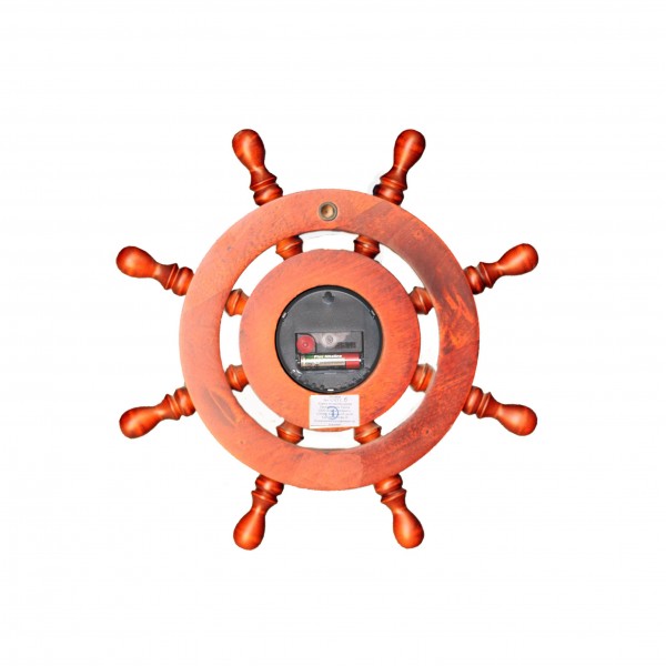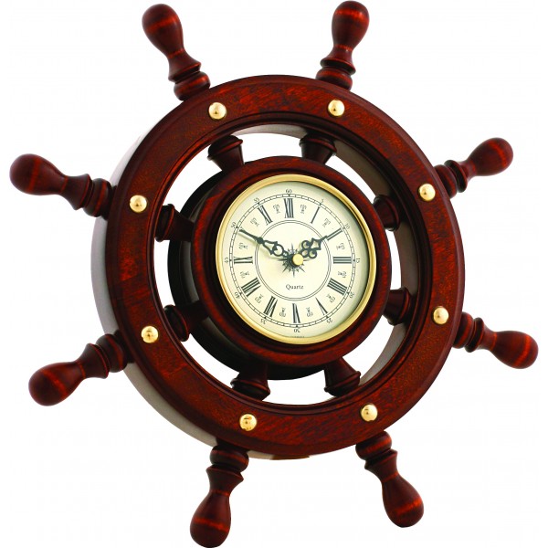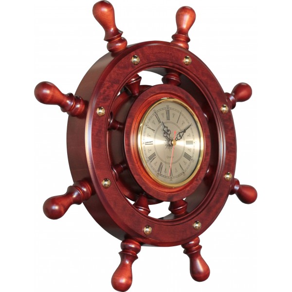 Это кварцевые часы в деревянном массивном корпусе, выполненном в форме штурвала старинного штурвала. По-настоящему необычайный, но, одновременно, и практически ценный подарок. Высокоточный механизм всегда сообщит Вам точное время, а приметный корпус украсит любую комнату.