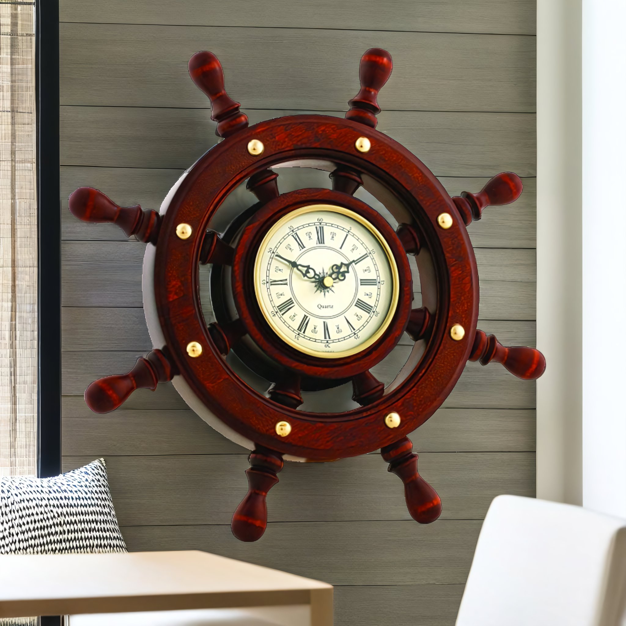 Штурвал сувенирный, часы (8 ручек)