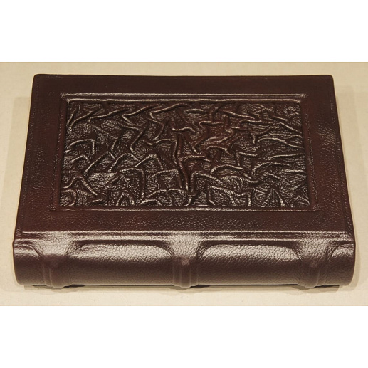 Оформление книги кожаный переплет ручной работы . накладка - гравировка на металле |