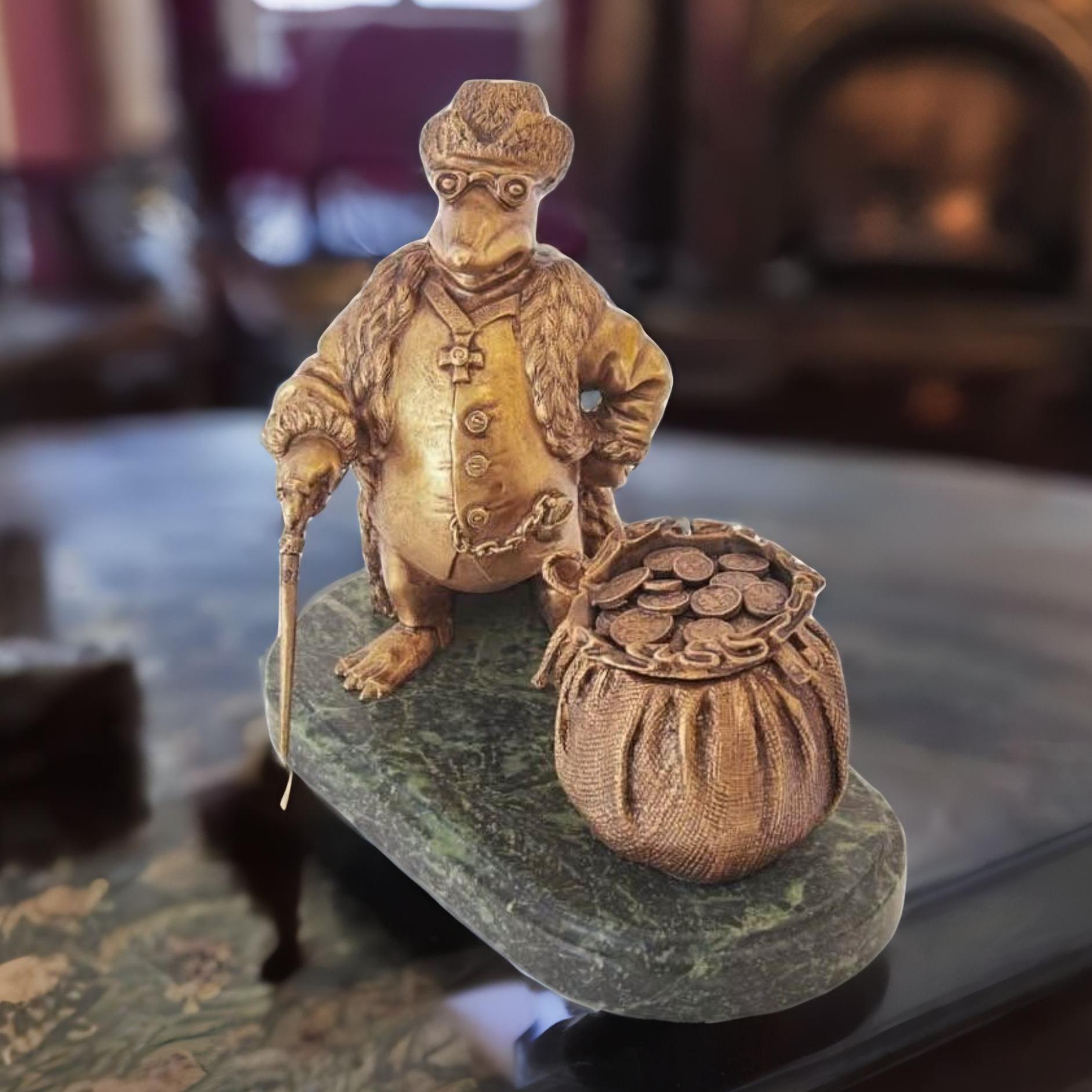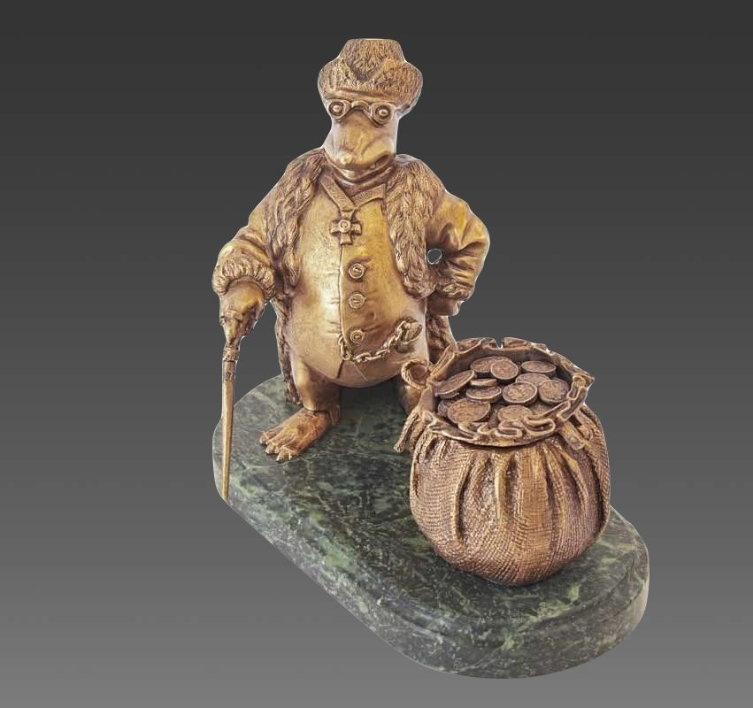 Специально для тех, кто ценит элегантность в каждой детали своего интерьера, мы представляем бронзовую скульптуру «Денежный крот». Не просто воплощение искусства, это очаровательная фигурка крота, одетого как банкир в цилиндр и плащ, рядом с мешком полным монет. Внимание к мелочам и мастерство исполнения придают этой скульптуре неповторимый вид и утонченность.